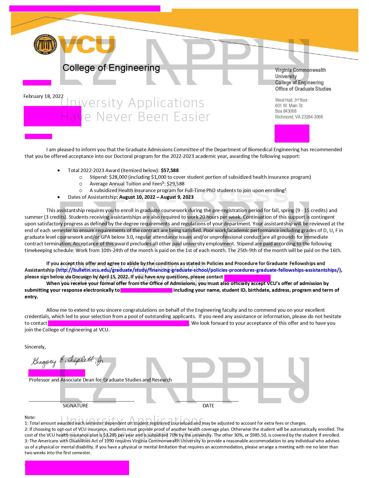 - اخذ پذیرش فول فاند توسط تیم «ایزی اپلای» در مقطع دکتری در رشته «مهندسی زیست پزشکی (Biomedical Engineering)» از «VCU» در آمریکا برای ترم پاییز 2022