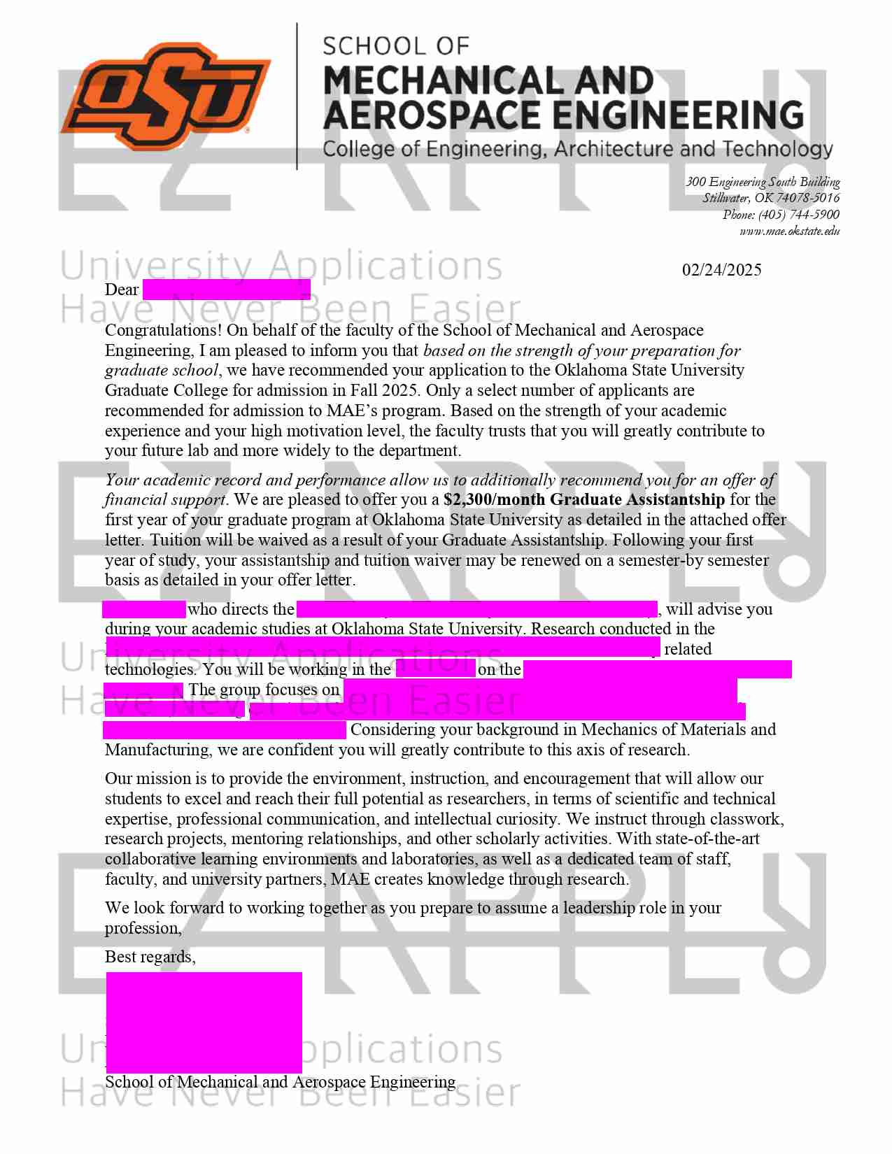 اخذ ادمیــشن فول فاند توسط تیم ایزی اپلای در مقطع «دکتری» در رشتهی «Mechanical and Aerospace Engineering» از Oklahoma State University در آمریکا برای پاییز ۲۰۲۵