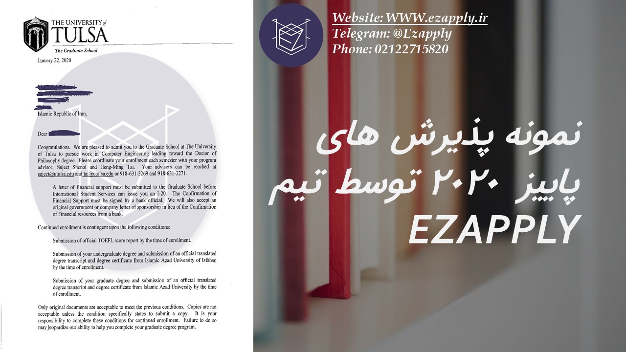اخذ پذیرش در مقطع دکترا در رشته مهندسی برق و کامپیوتر از دانشگاه « Tulsa» در ایالت اوکلاهاما آمریکا