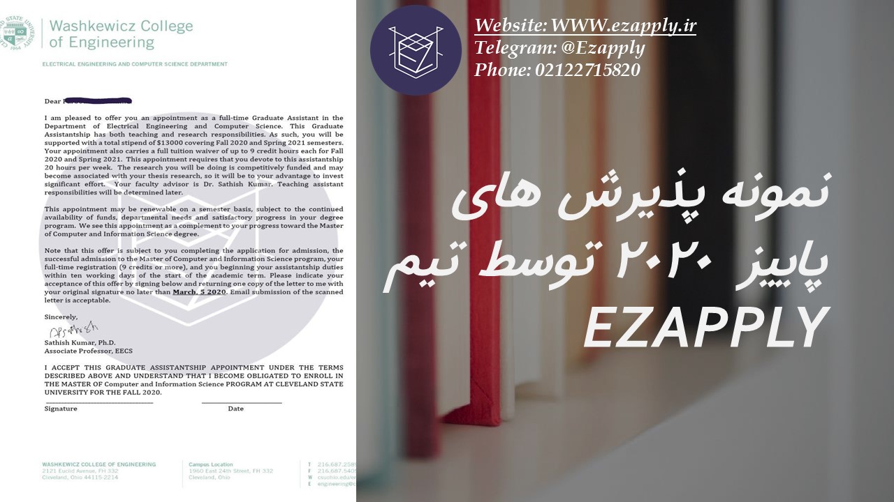 اخذ پذیرش در دانشگاه «Cleveland State» آمریکا و دانشگاه «Windsor» کانادا و دانشگاه « Texas at San Antonio » آمریکا در مقطع کارشناسی ارشد رشته علوم کامپیوتر