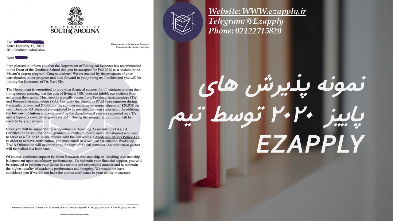 اخذ پذیرش «علوم زیستی» در دانشگاه «South Carolina» آمریکا در مقطع کارشناسی ارشد