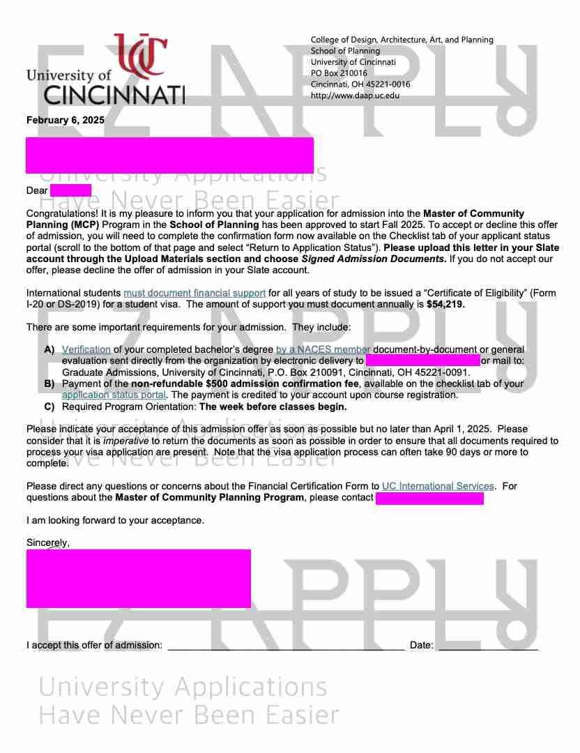 اخذ پذیرش توسط تیم ایزی اپلای در مقطع «کارشناسی ارشد» در رشتهی «Community Planning» از University of Cincinnati از آمریکا برای پاییز ۲۰۲۵