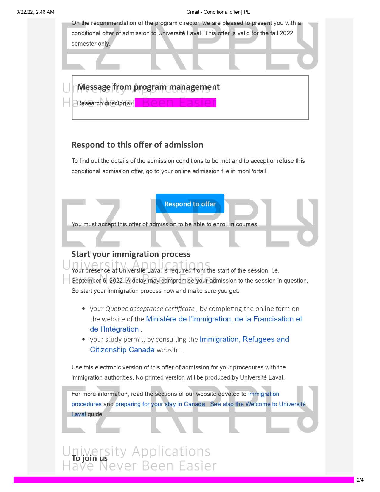 - اخذ پذیرش با فاند توسط تیم «ایزی اپلای» در مقطع دکتری در رشته «زیست شناسی» از «Laval University» در کانادا برای ترم پاییز 2022