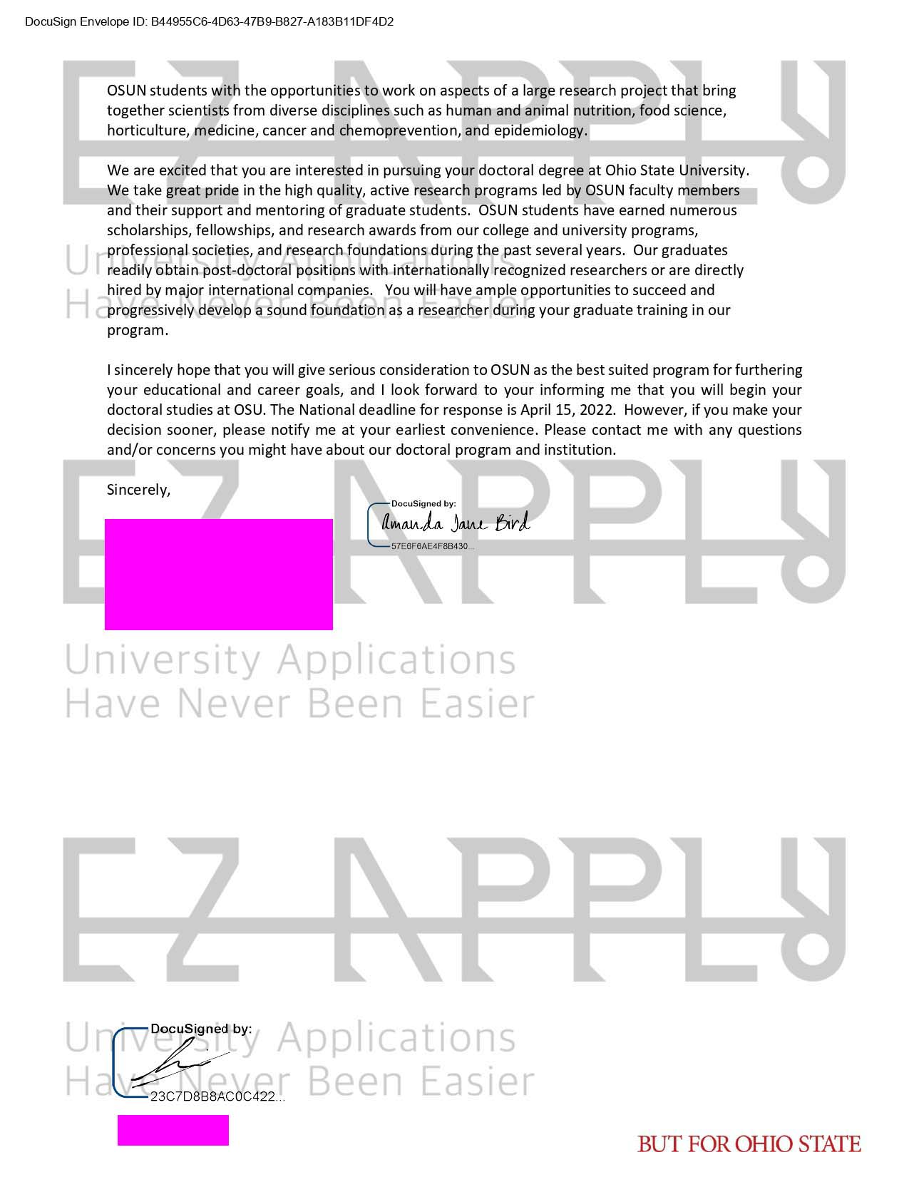 اخذ پذیرش توسط تیم «ایزی اپلای» در مقطع دکتری در رشته «علوم تغذيه» از دانشگاه «Ohio State University» در آمریکا برای پاییز 2022
