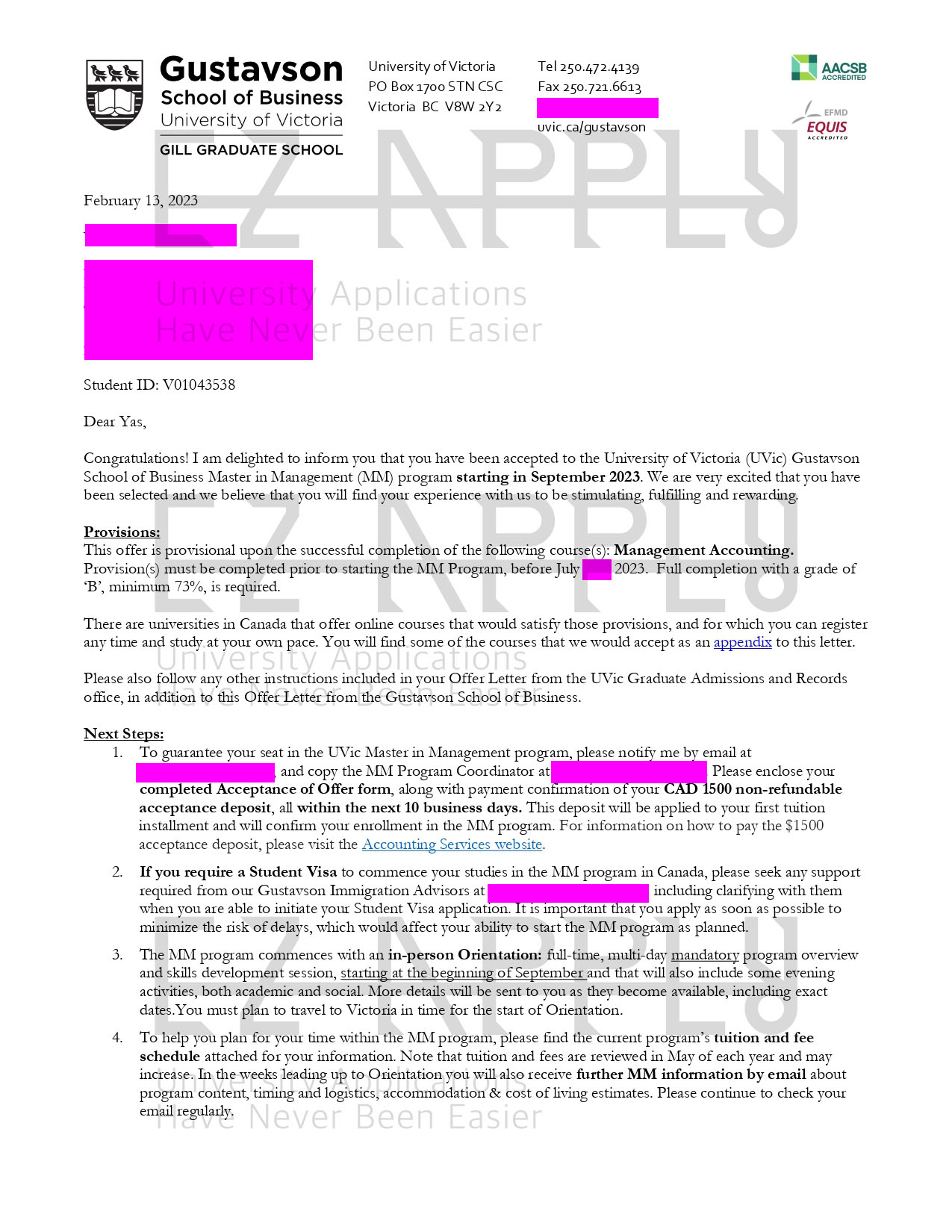 اخذ پذیرش توسط تیم «ایزی اپلای» در مقطع «کارشناسی ارشد» در رشته ی «مدیریت بازرگانی» از دانشگاه «University of Victoria» در کانادا برای ترم پاییز 2023
