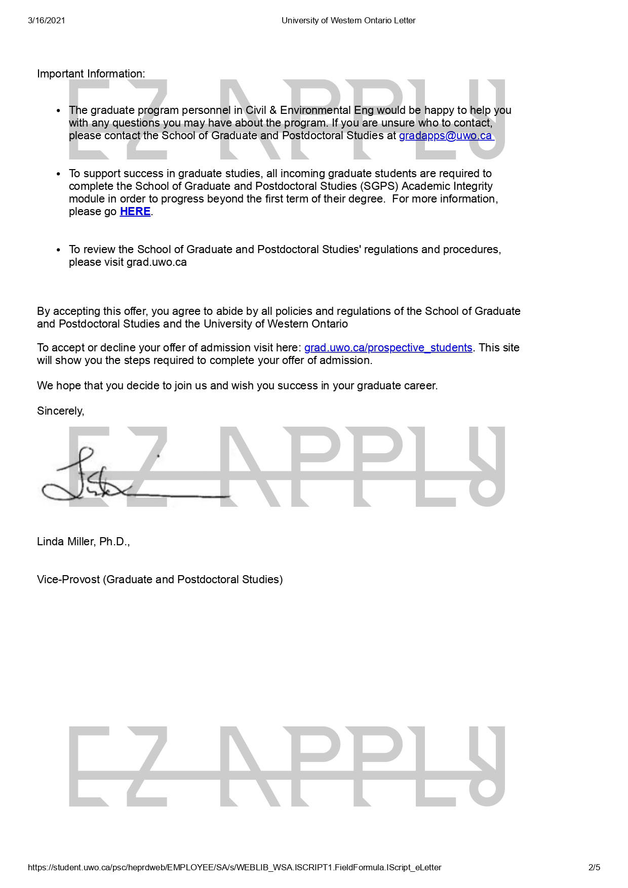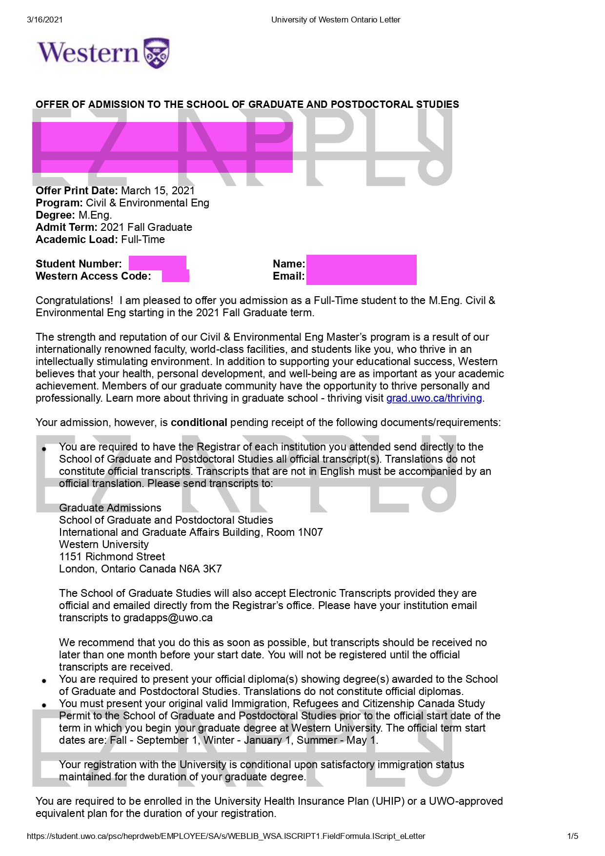 اخذ پذیرش توسط تیم «ایزی اپلای» در مقطع کارشناسی ارشد در رشته «مهندسی بهداشت» از دانشگاه «Western Ontario» در کانادا برای ترم پاییز 2021