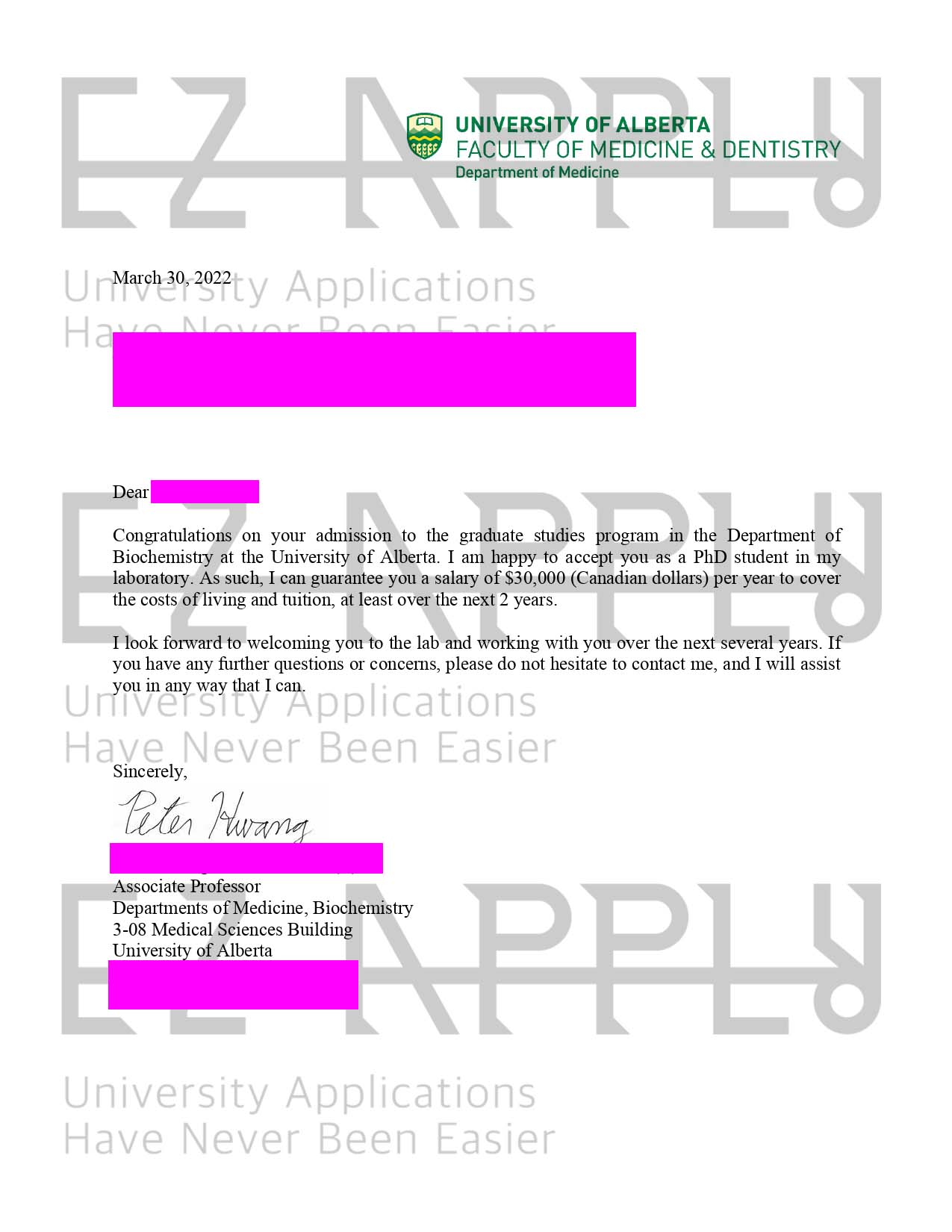 اخذ پذیرش فول فاند توسط تیم «ایزی اپلای» در مقطع دکتری در رشته «بیوشیمی» از «University of Alberta» در کانادا برای پاییز 2022