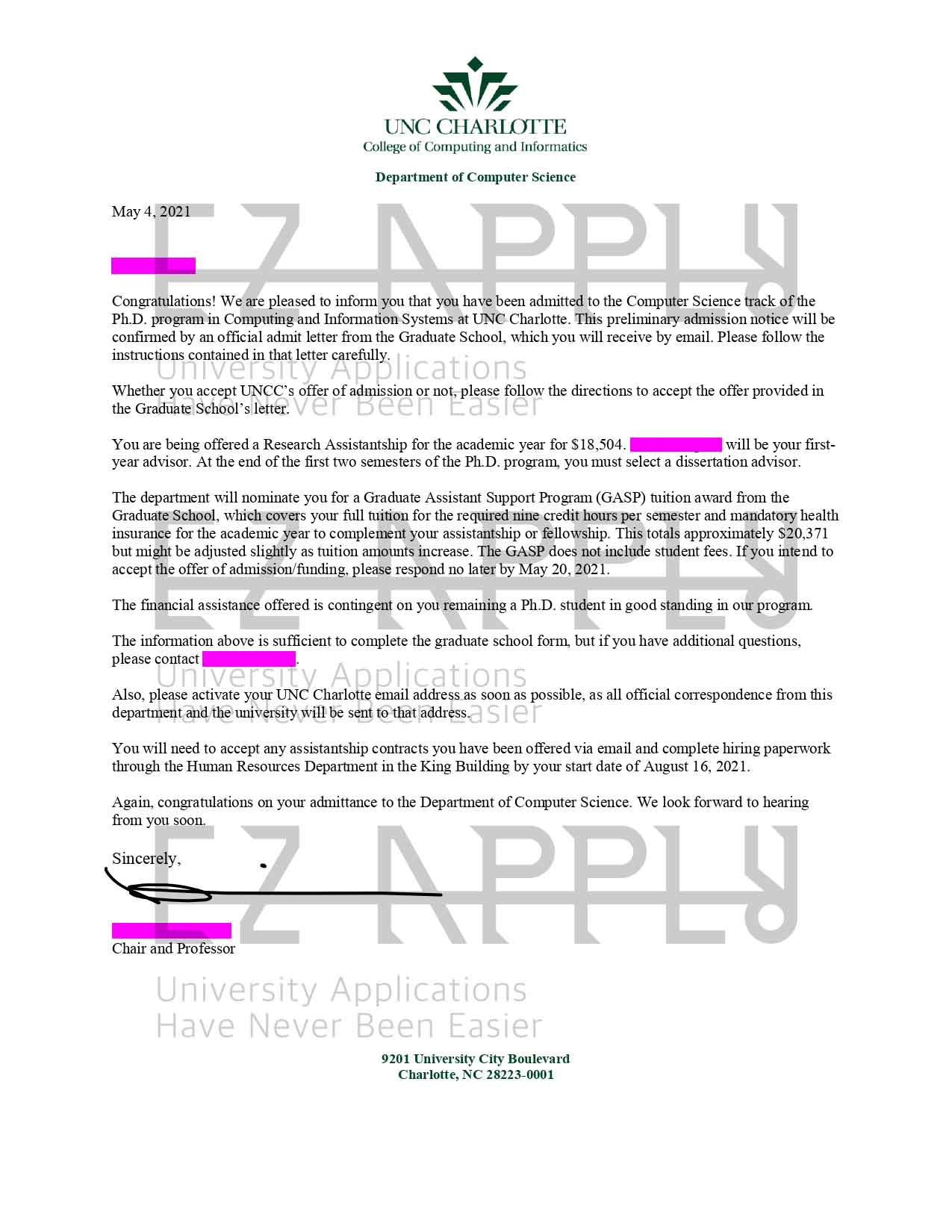 • اخذ پذیرش فول فاند توسط تیم «ایزی اپلای» در مقطع دکتری در رشته «علوم کامپیوتر» از دانشگاه «North Carolina at Charlotte» در آمریکا برای ترم پاییز 2021