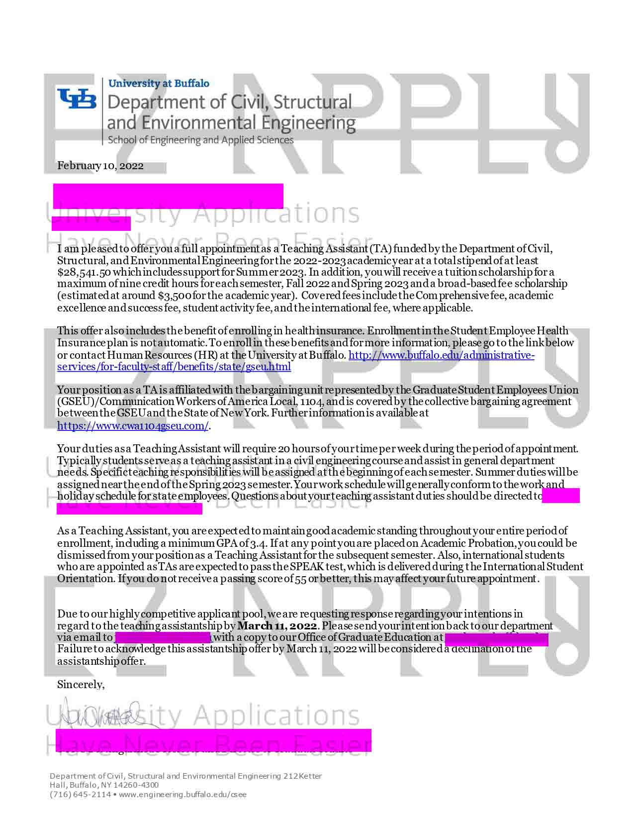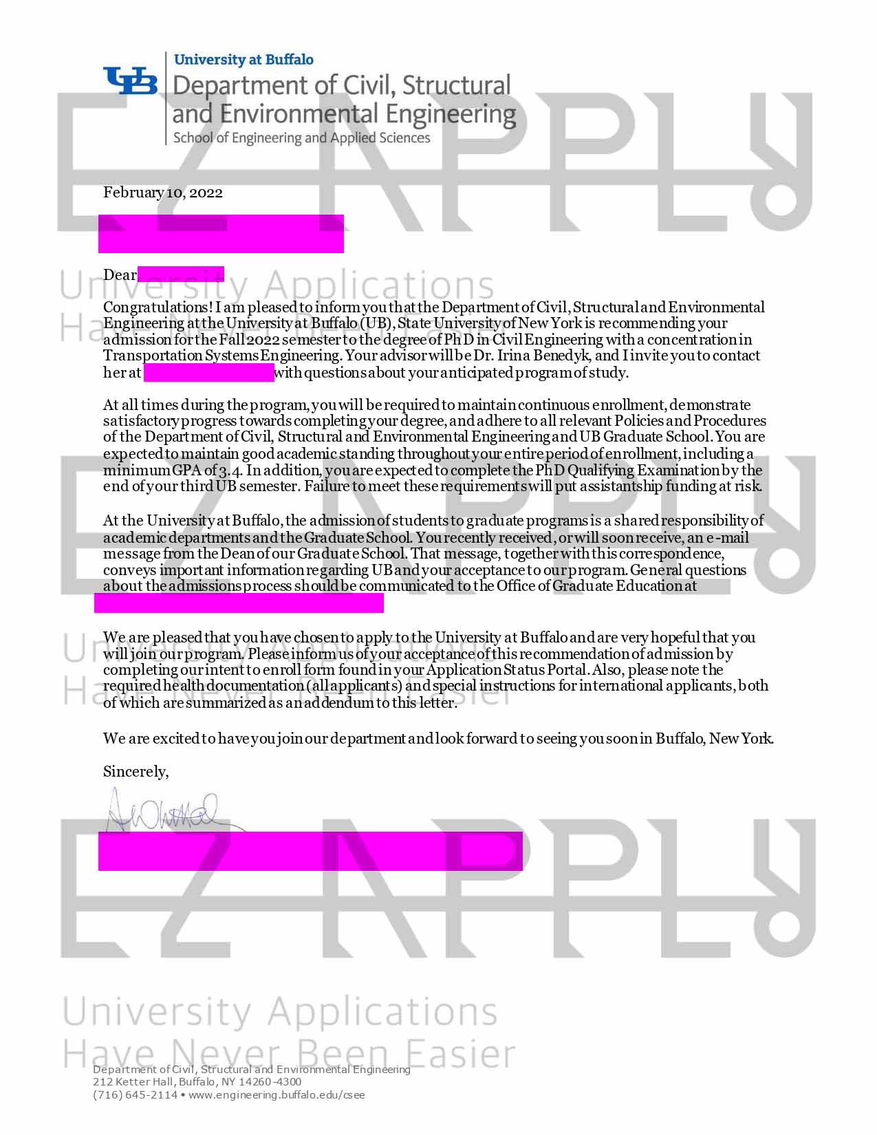 اخذ پذیرش فول فاند توسط تیم «ایزی اپلای» در مقطع دکتری در رشته «مهندسی سیستم های حمل و نقل» از «University at Buffalo» آمریکا برای پاییز 2022