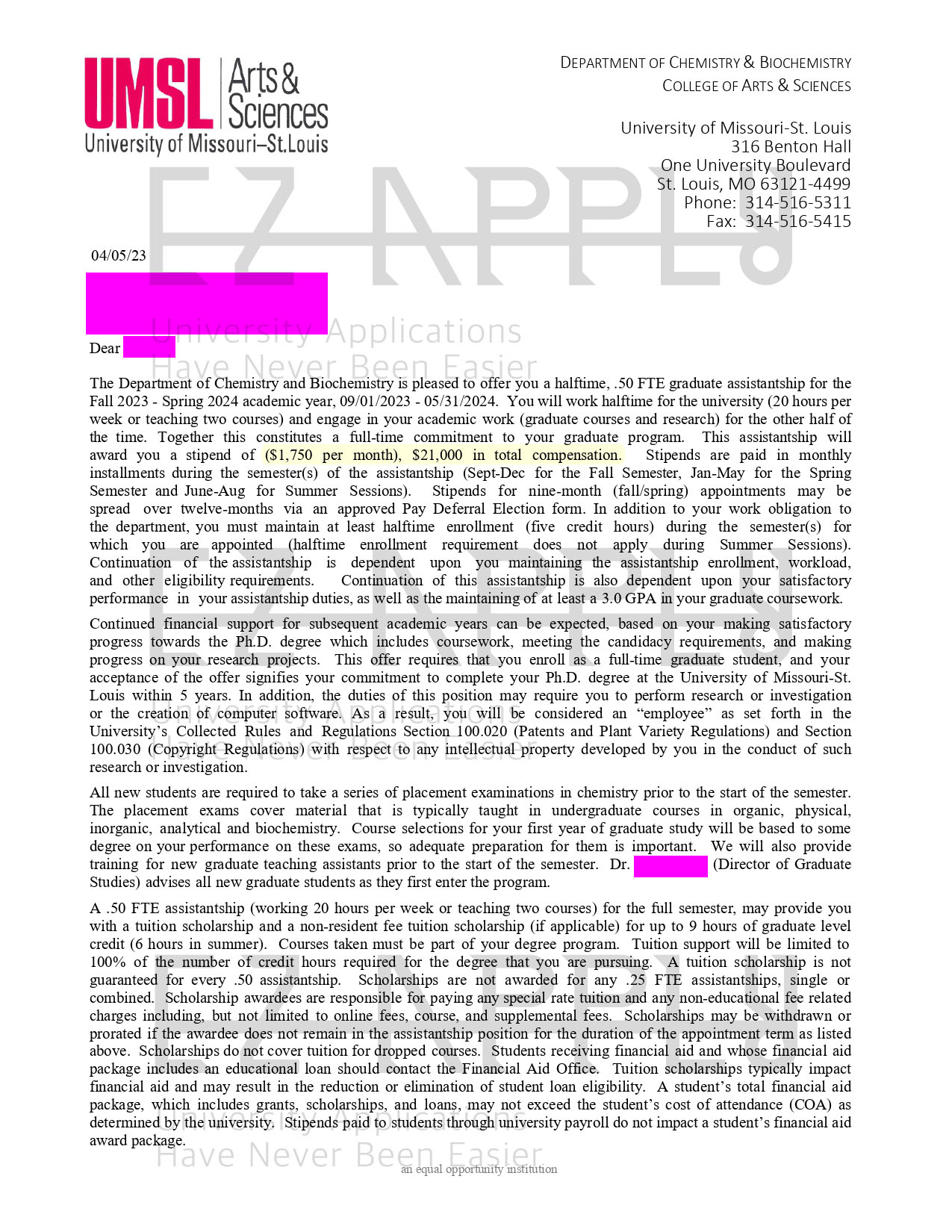 اخذ پذیرش فول فاند توسط تیم «ایزی اپلای» در مقطع «دکتری» دررشته ی «Chemistry and Biochemistry» از دانشگاه «University of Missouri–St. Louis» در آمریکا برای ترم پاییز 2023