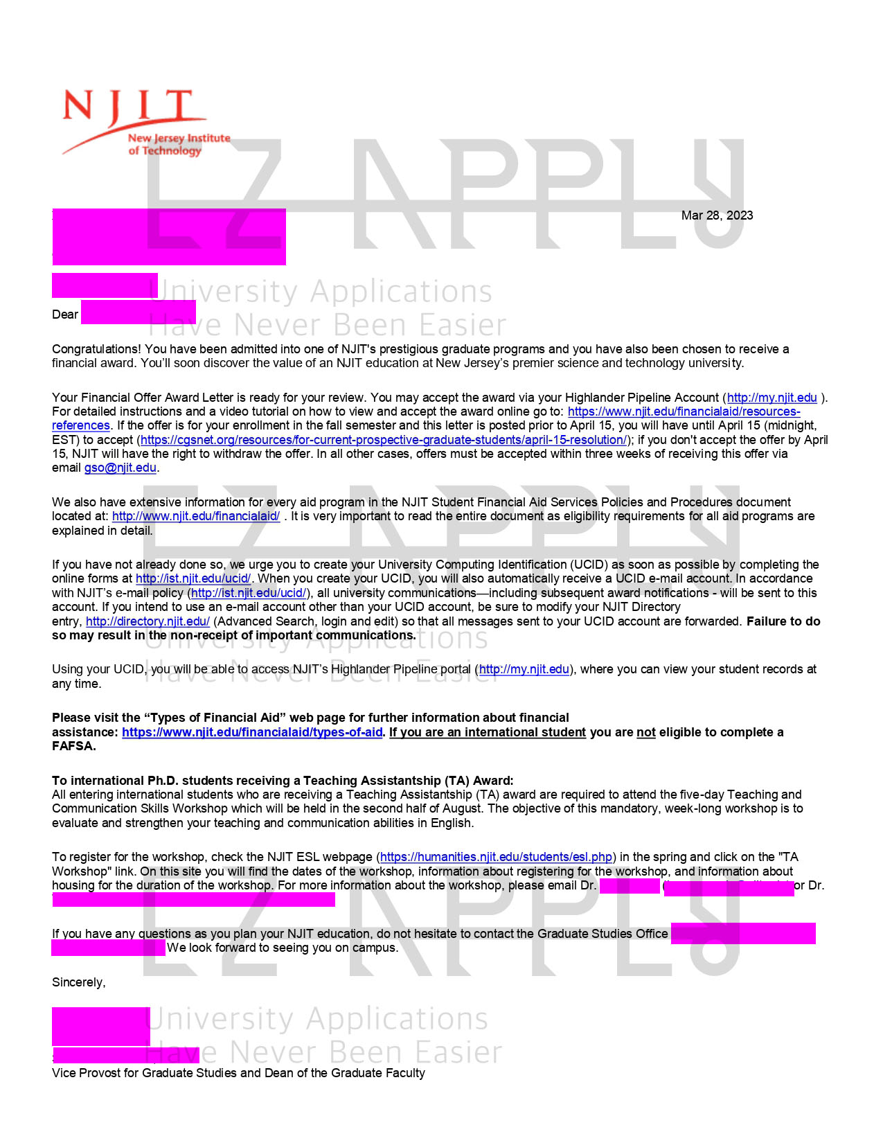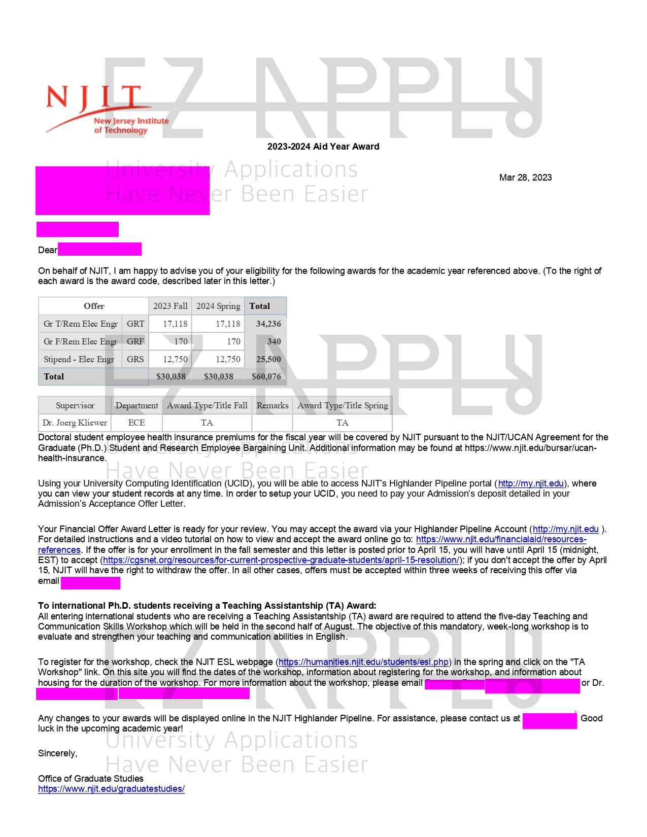 اخذ پذیرش فول فاند توسط تیم «ایزی اپلای» در مقطع «دکتری» در رشته ی «Electrical Engineering» از دانشگاه «New Jersey Institute of Technology» در آمریکا برای ترم پاییز 2023