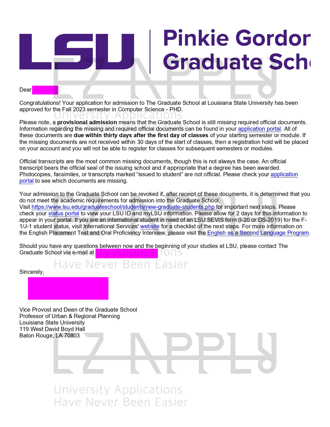 اخذ پذیرش توسط تیم «ایزی اپلای» در مقطع «دکتری» در رشته ی «Coumputer science» از دانشگاه «Louisiana State University» در آمریکا برای ترم پاییز 2023