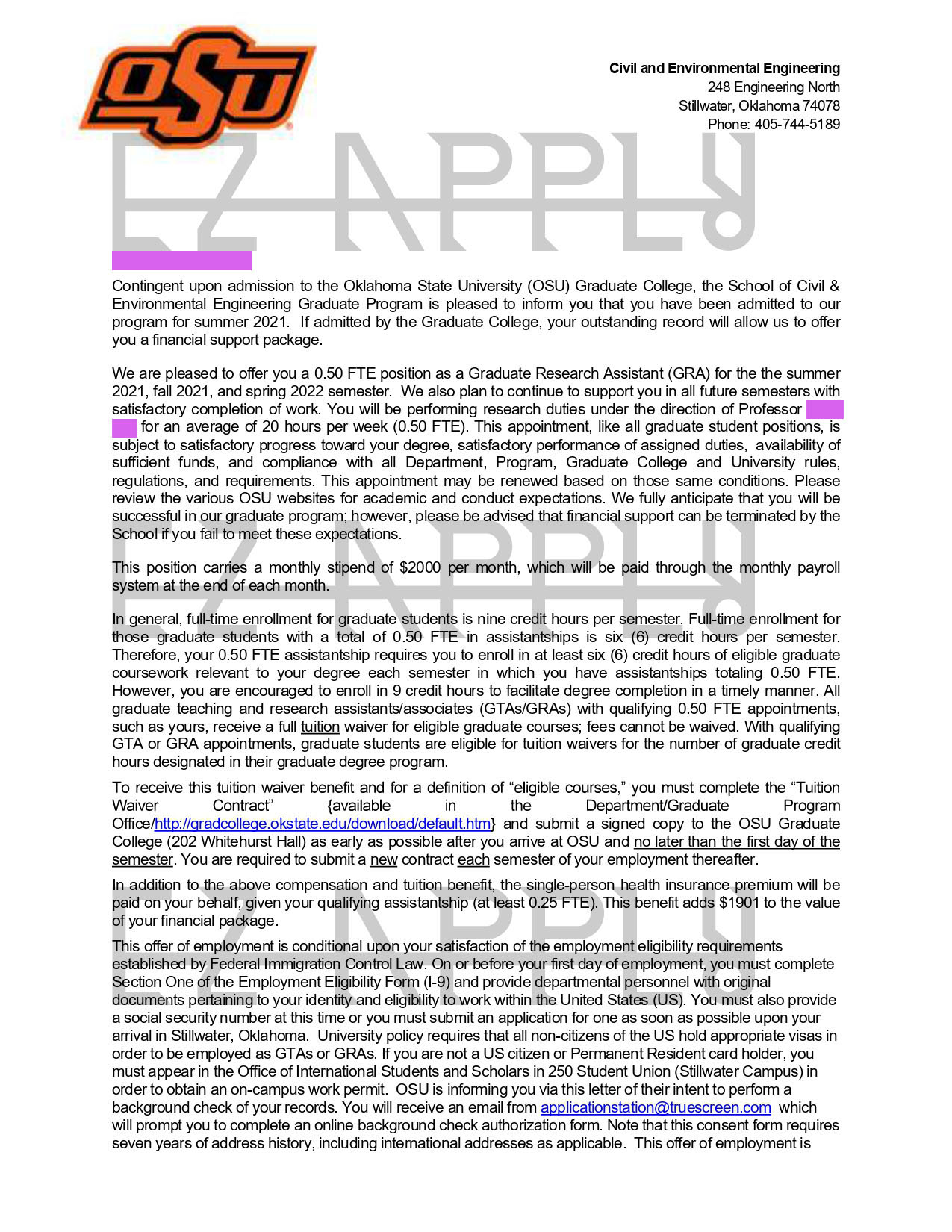 اخذ پذیرش توسط تیم «ایزی اپلای» در مقطع دکتری «Civil and Environmental Engineering» از دانشگاه «Oklahoma State University» آمریکا