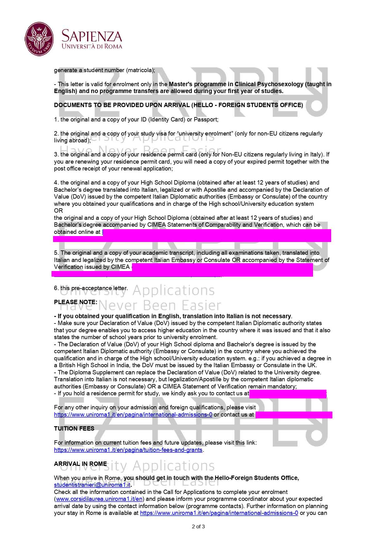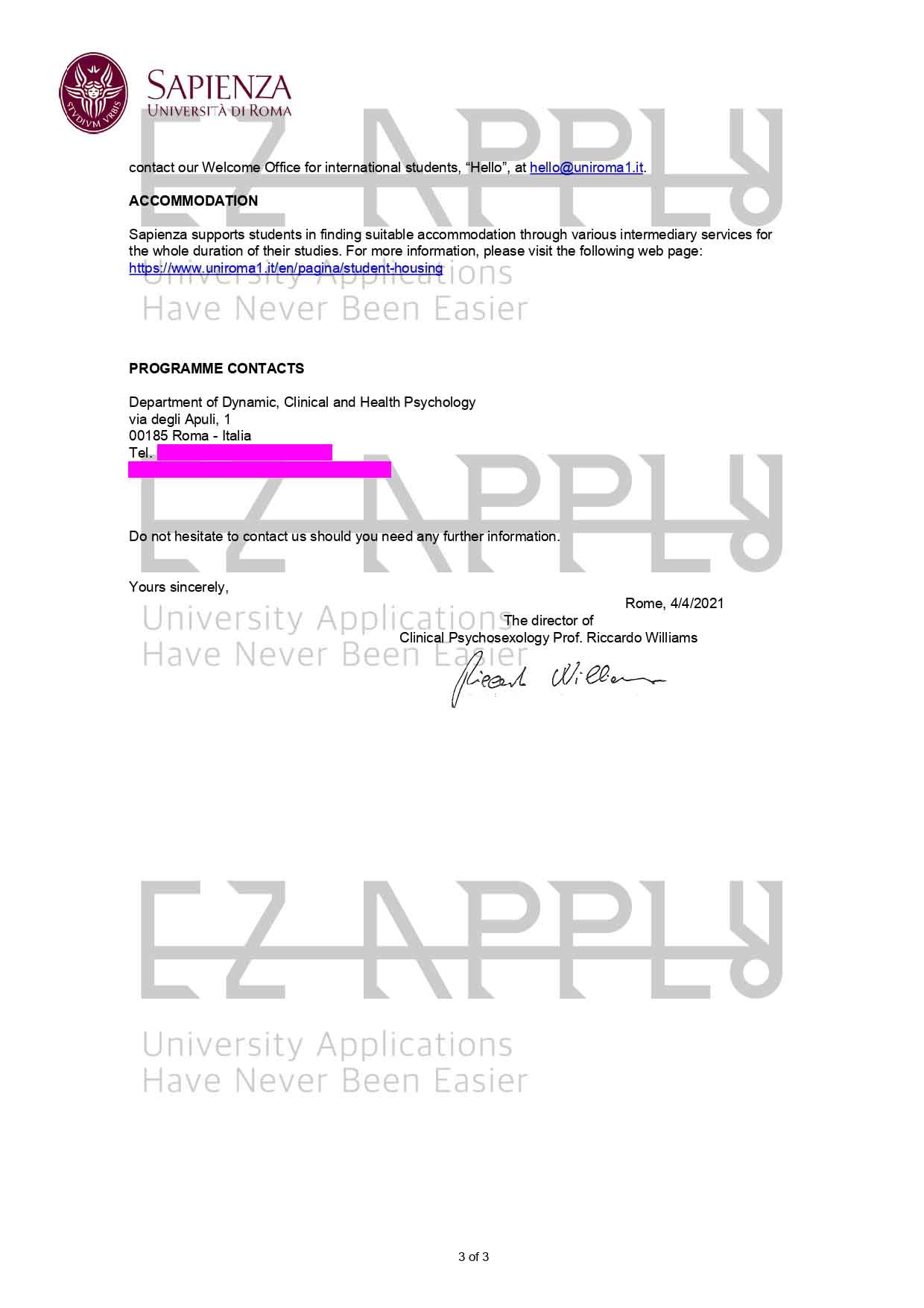- اخذ پذیرش توسط تیم «ایزی اپلای» در مقطع کارشناسی ارشد در رشته «روانشناسی بالینی» از «Sapienza» در ایتالیا برای ترم پاییز 2021