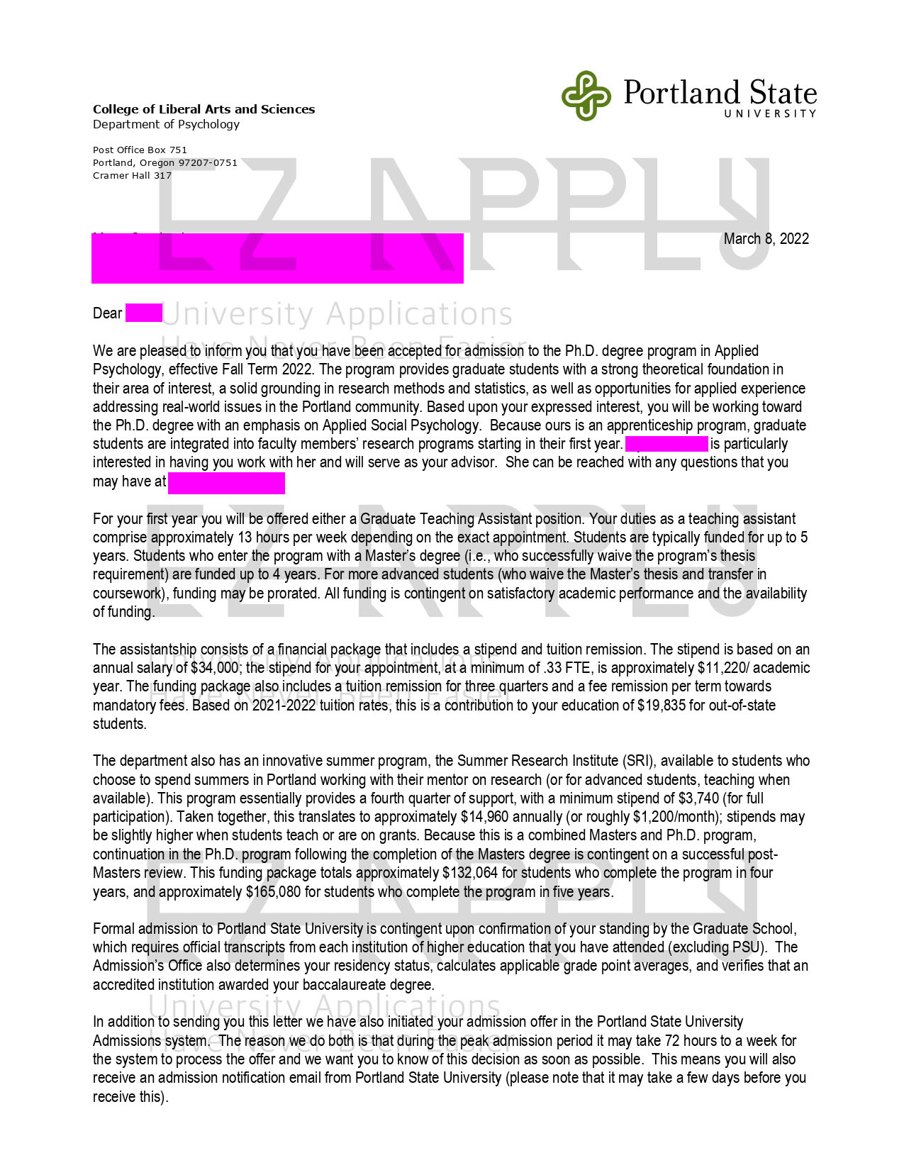 اخذ پذیرش فول فاند توسط تیم «ایزی اپلای» در مقطع دکتری «روانشناسی کاربردی» از دانشگاه «Portland State University» آمریکا برای پاییز ۲۰۲۲