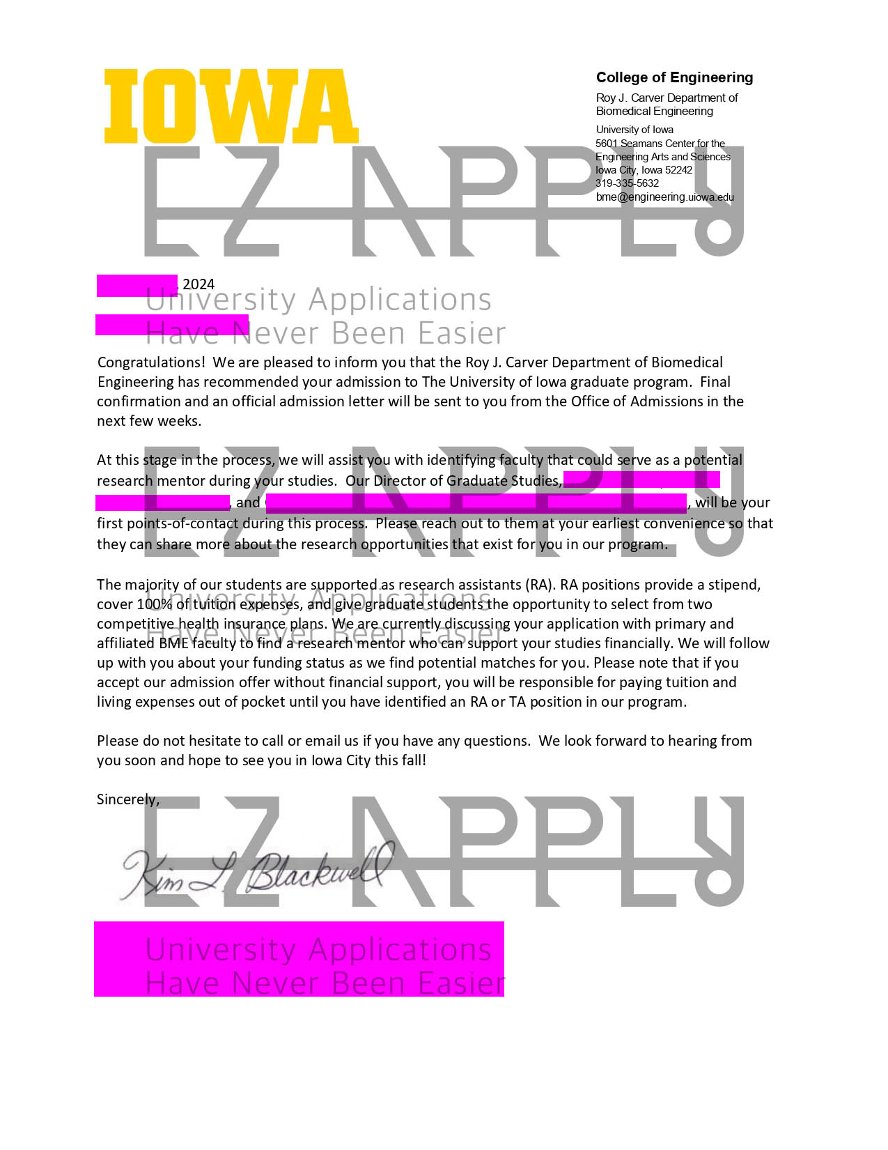 ادمیشن فول فاند اخذ شده توسط تیم ایزی اپلای در مقطع «دکتری» در رشته «Biomedical Engineering» از The University of Iowa در آمریکا برای پاییز 2024