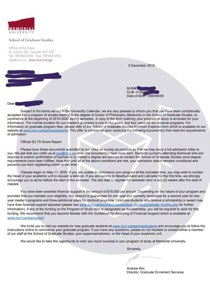 - اخذ پذیرش توسط تیم ایزی اپلای در مقطع دکترا رشته «علوم پزشکی» از دانشگاه «Memorial» کانادا برای ترم تابستان 2020