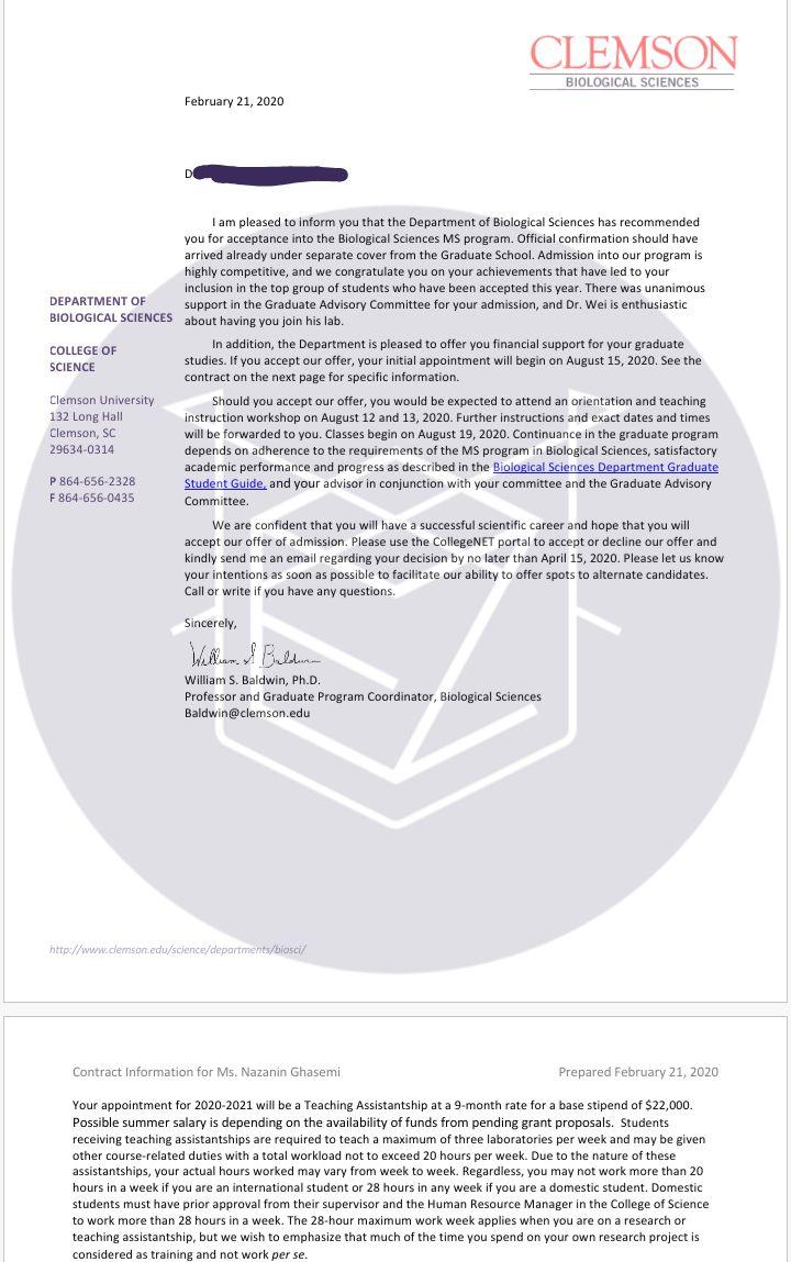 - اخذ پذیرش توسط تیم ایزی اپلای در مقطع کارشناسی ارشد رشته «علوم زیستی» از دانشگاه «Clemson» آمریکا برای ترم پاییز 2020