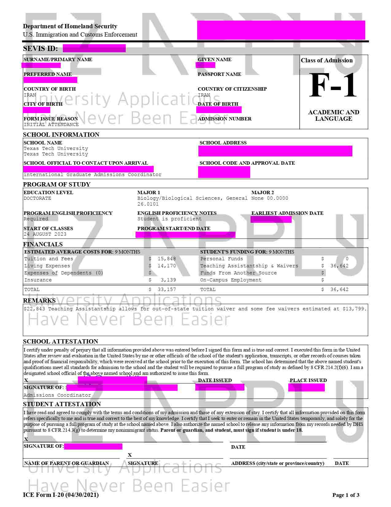 پذیرش فول فاند اخذ شده توسط تیم ایزی اپلای در مقطع «دکتری» در رشته «Biology» از «Texas Tech University» در آمریکا برای ترم پاییز 2023