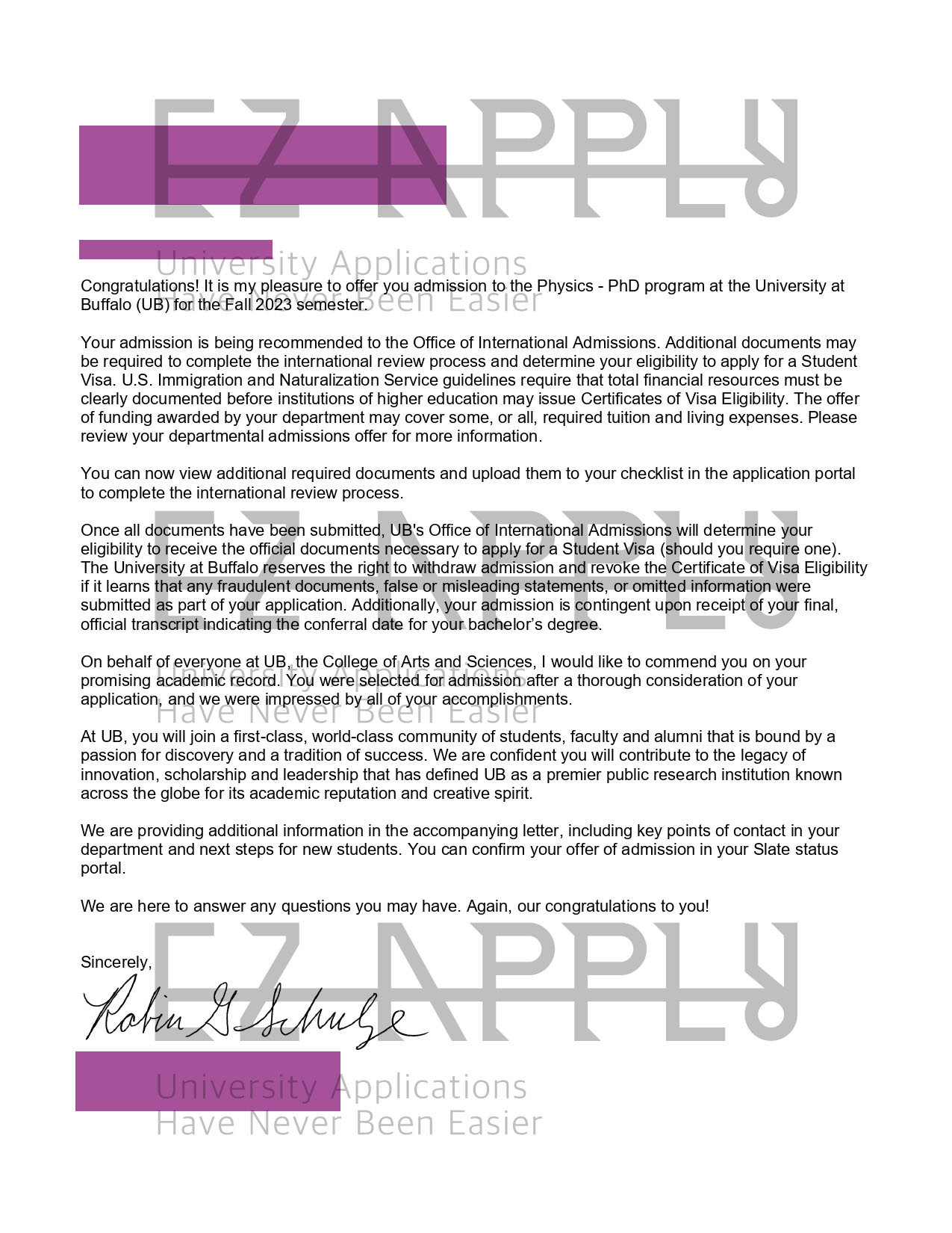 • پذیرش اخذ شده توسط تیم ایزی اپلای در مقطع «دکتری» در رشته «فیزیک» از «University at Buffalo» در آمریکا برای پاییز 2023