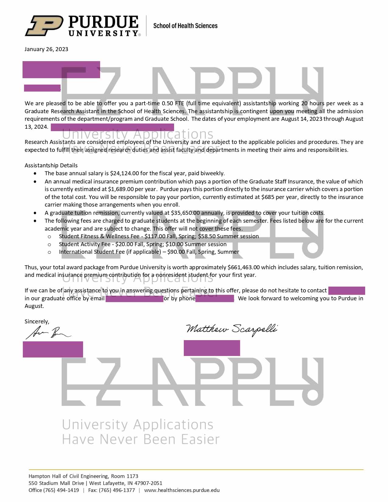 - پذیرش اخذ شده توسط تیم ایزی اپلای در مقطع «دکتری» در رشته «Medical Physics» از «Purdue University» در آمریکا برای پاییز 2023