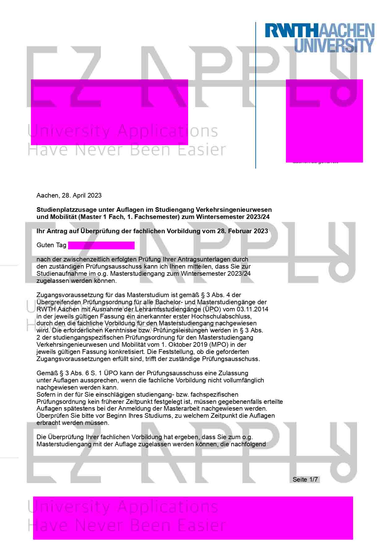 پذیرش اخذ شده توسط تیم ایزی اپلای در مقطع «کارشناسی ارشد» در رشته «Transport Engineering and Mobility» از «RWTH Aachen University» در آلمان برای پاییز 2023