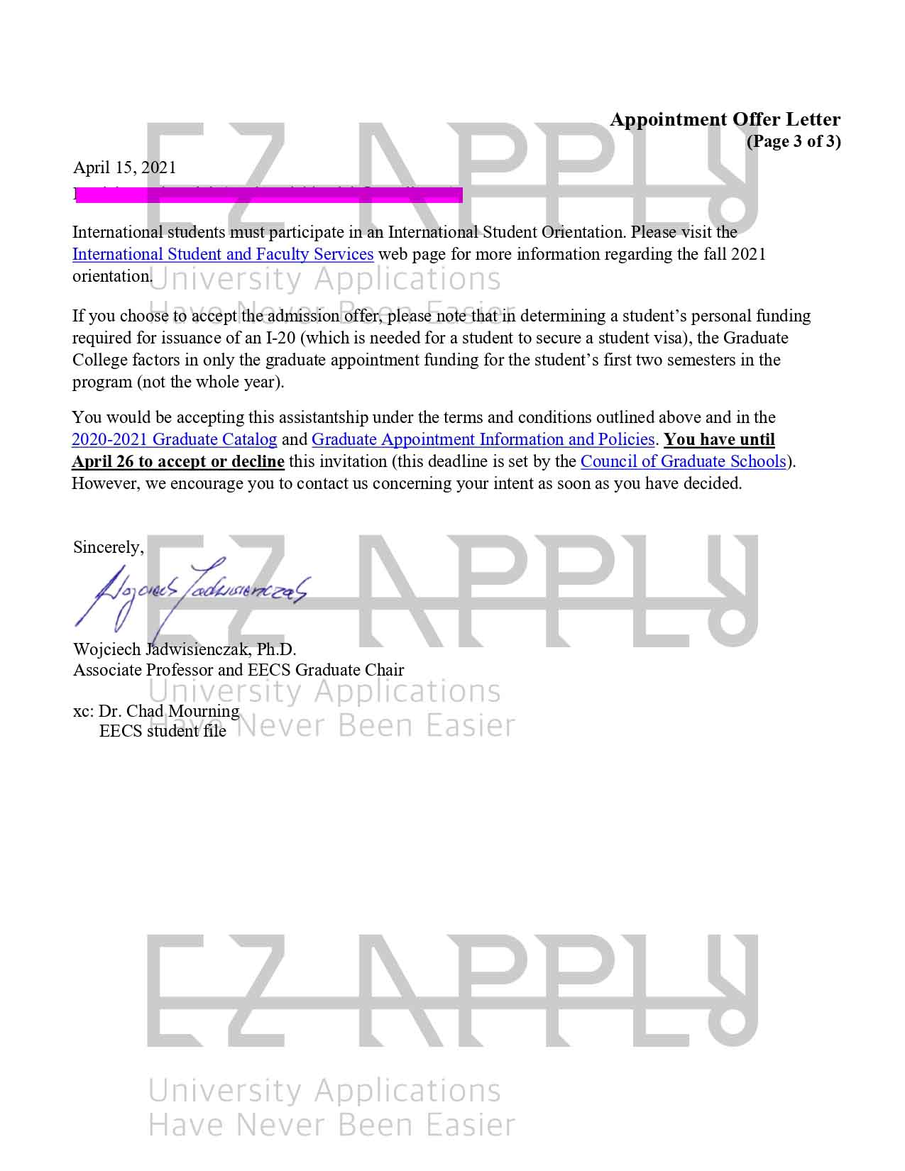 اخذ پذیرش توسط تیم ایزی اپلای در مقطع «کارشناسی ارشد» در رشته‌ی «Information and Communication Systems»