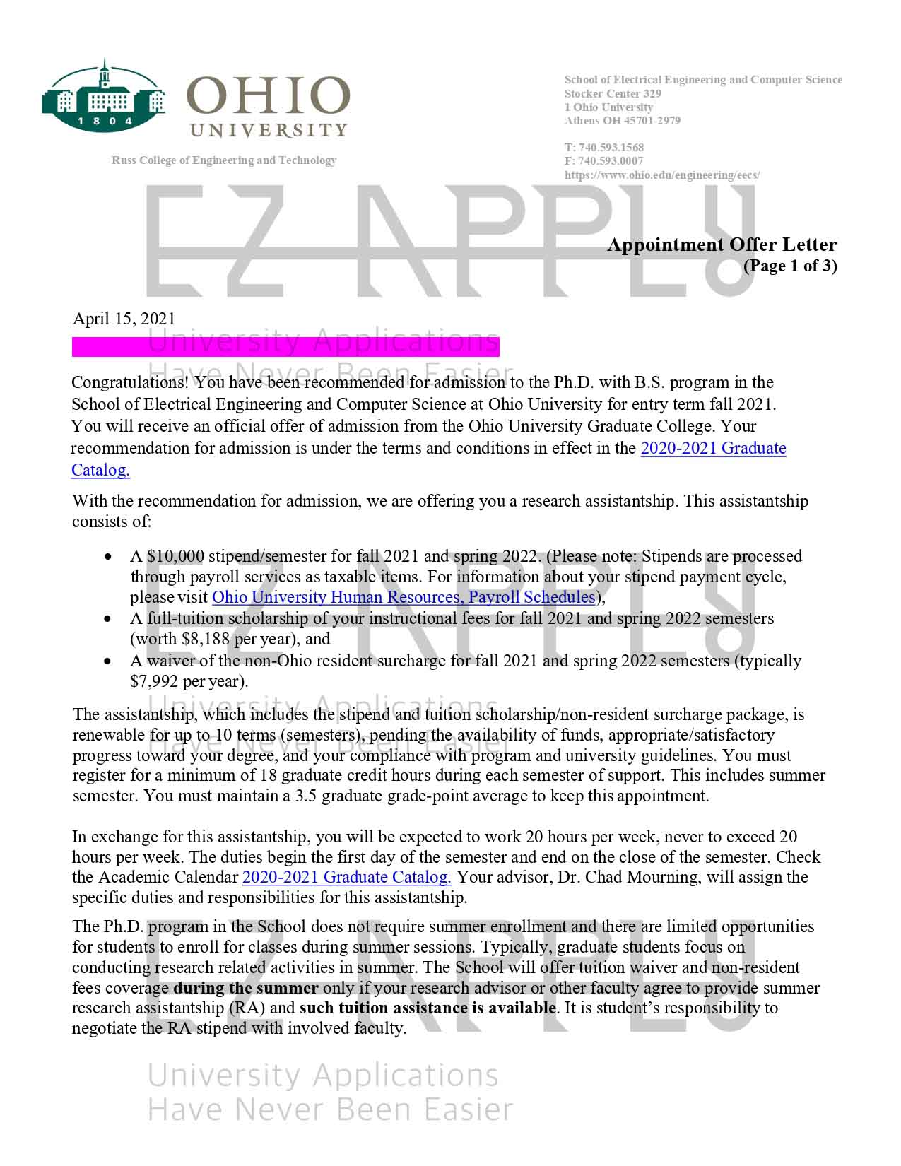 •  اخذ پذیرش فول فاند توسط تیم «ایزی اپلای» در مقطع دکتری از «Ohio» در آمریکا برای ترم پاییز 2021