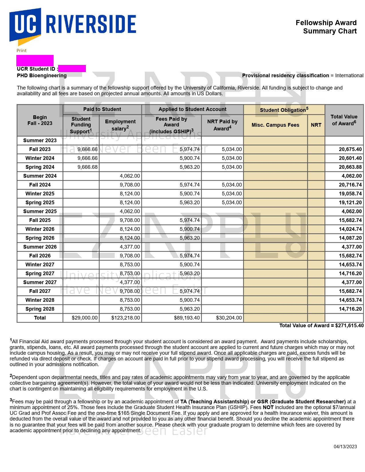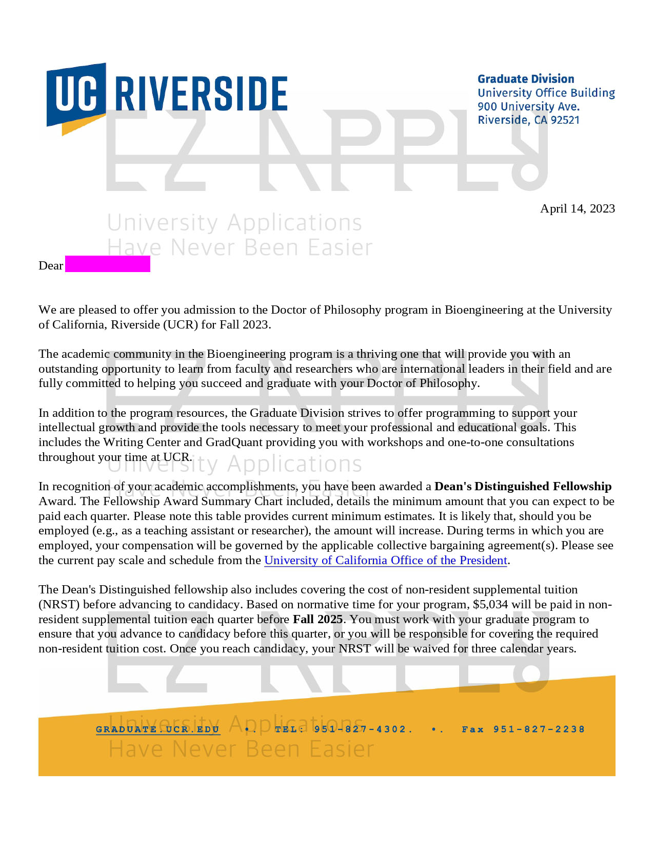 اخذ پذیرش فول فاند توسط تیم «ایزی اپلای» در مقطع «دکتری، phd direct» دررشته ی «Bioengineering» از دانشگاه «University of California, Riverside» در آمریکا برای ترم پاییز 2023