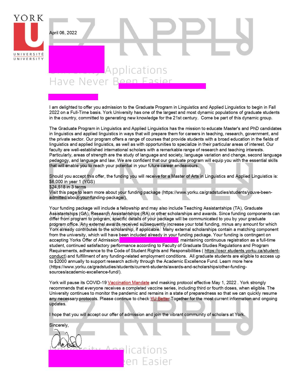 • اخذ پذیرش با فاند توسط تیم «ایزی اپلای» در مقطع کارشناسی ارشد در رشته «زبان شناسی» از «York University» در کانادا برای ترم پاییز 2022