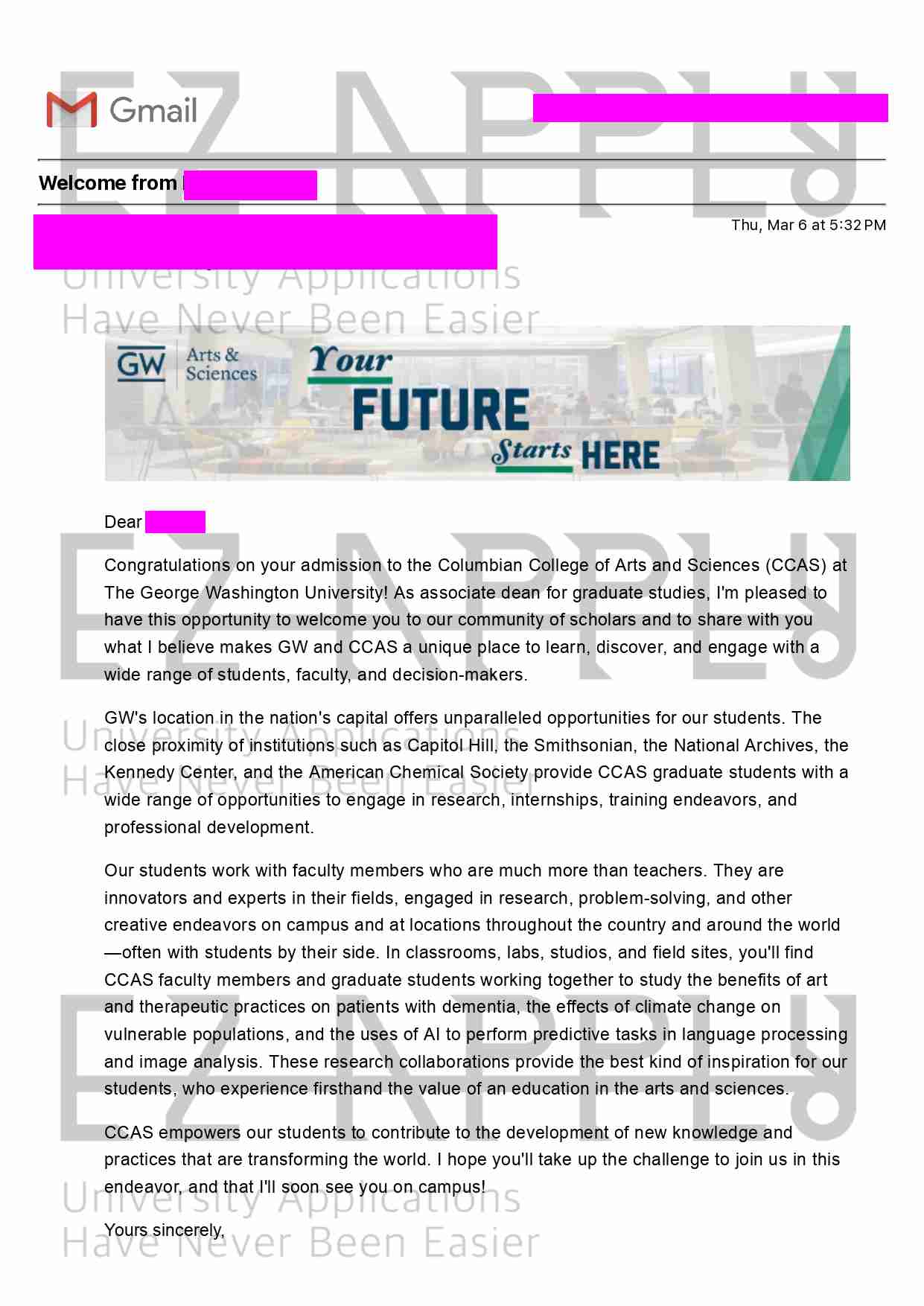 اخذ ادمیــشن با فاند توسط تیم ایزی اپلای در مقطع «کارشناسی ارشد» در رشتهی «Art History» از George Washington University در آمریکا برای پاییز ۲۰۲۴