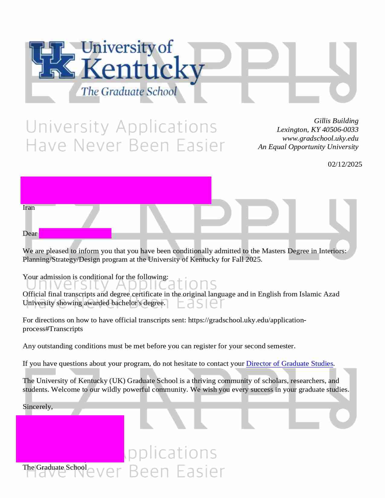 اخذ ادمیــشن فول فاند توسط تیم ایزی اپلای در مقطع «کارشناسی ارشد» در رشتهی «Landscape Architecture» از University of Tennessee در آمریکا برای پاییز ۲۰۲۵