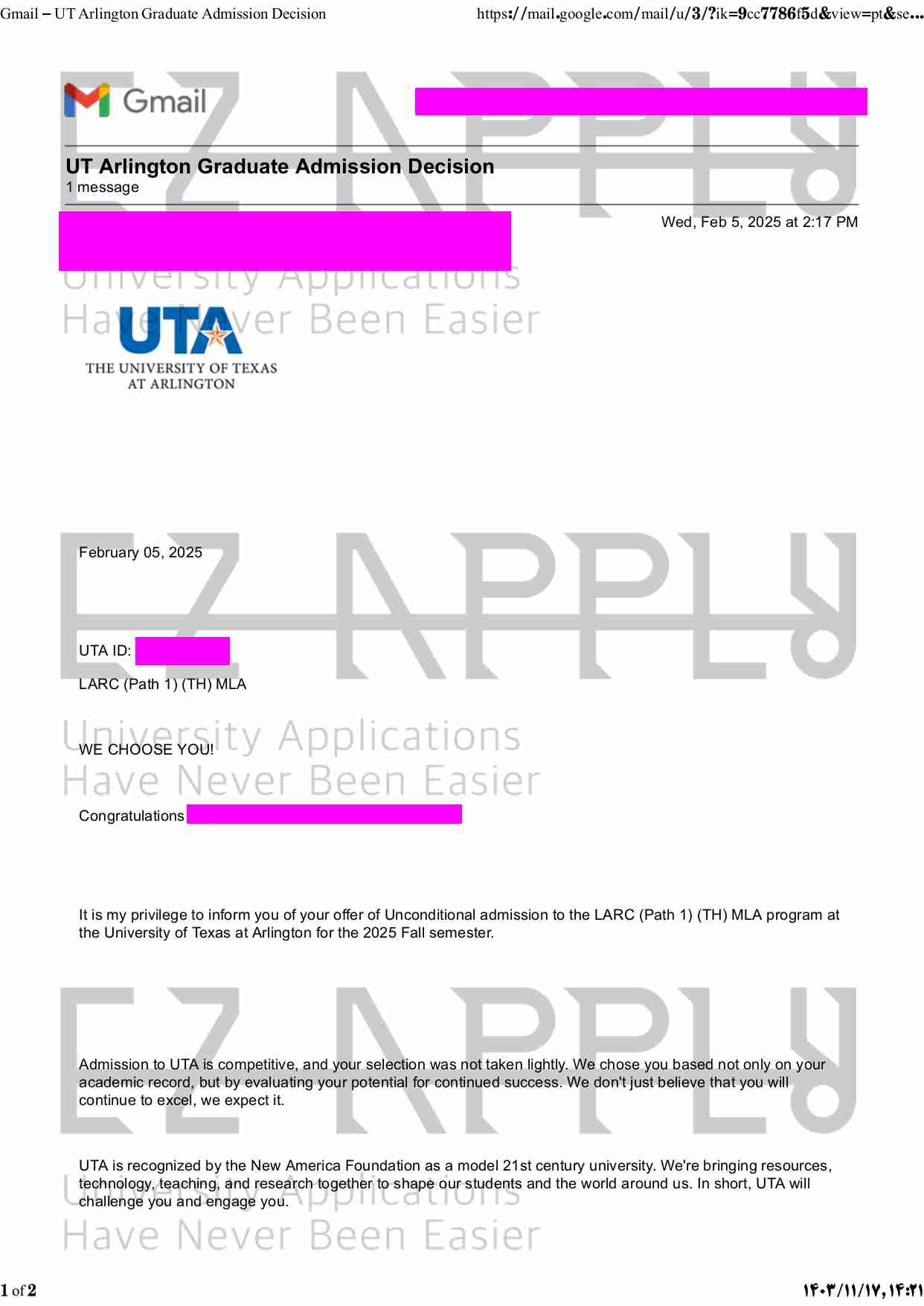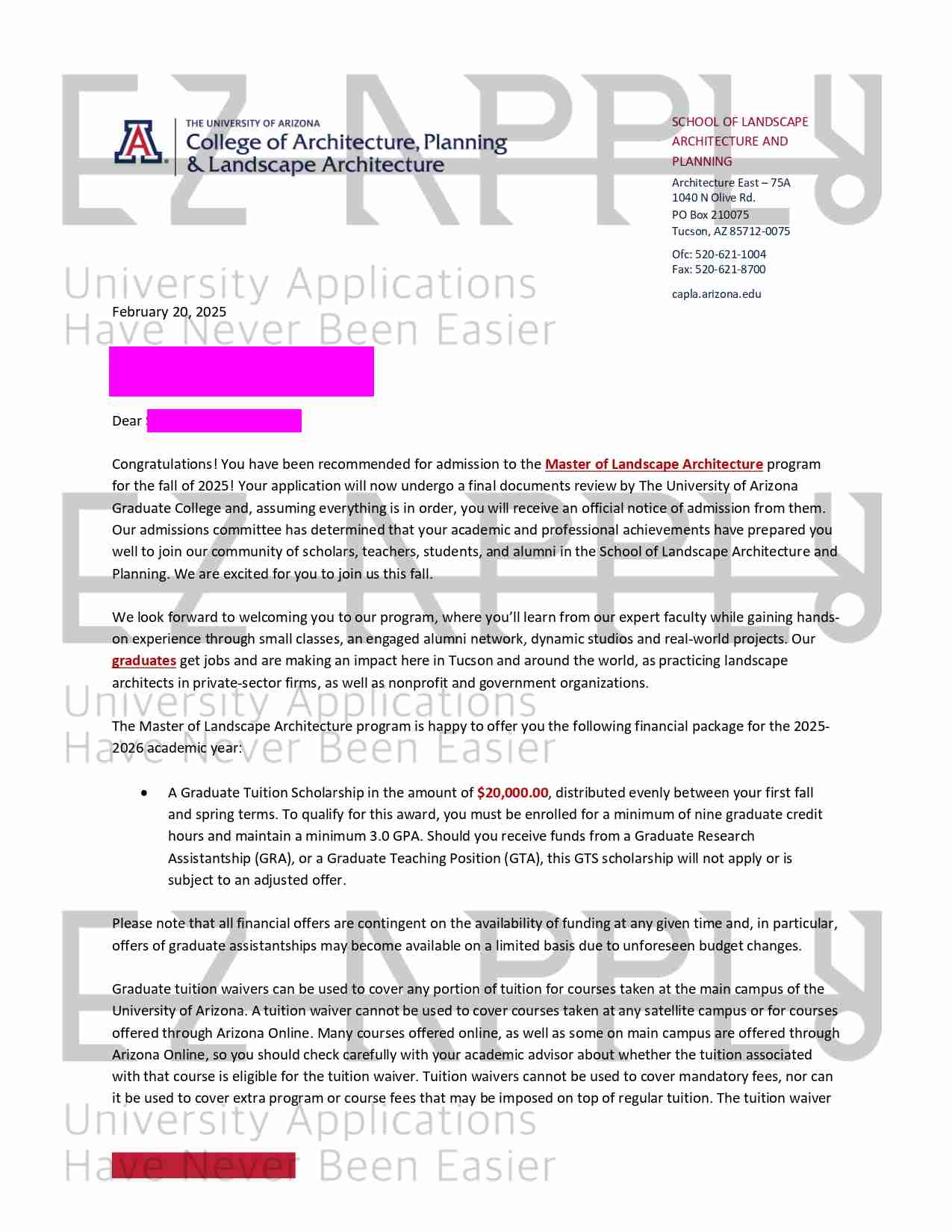 اخذ ادمیــشن با فاند توسط تیم ایزی اپلای در مقطع «کارشناسی ارشد» در رشتهی «Landscape Architecture» از University of Arizona در آمریکا برای پاییز ۲۰۲۵