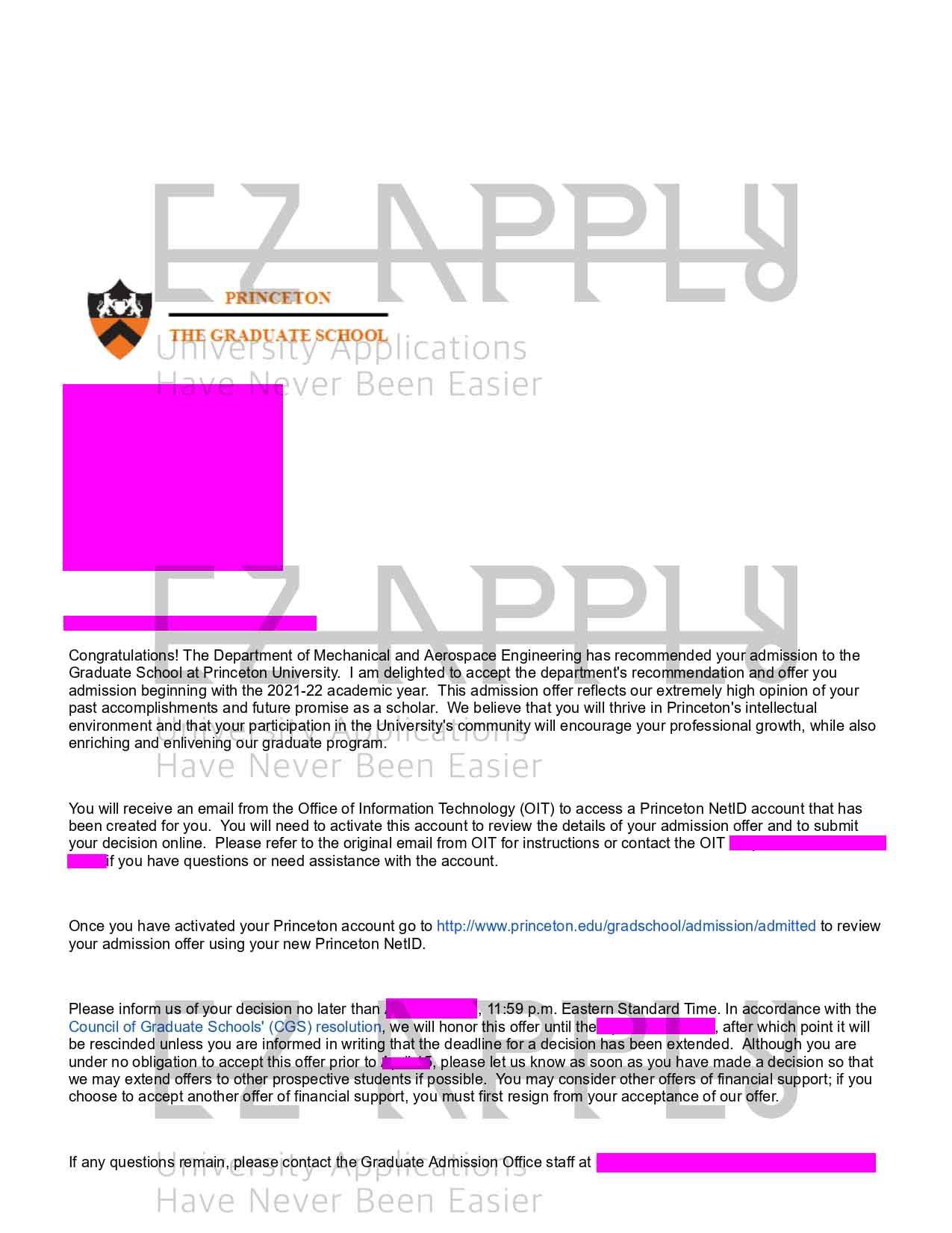 - اخذ پذیرش فول فاند توسط تیم «ایزی اپلای» در مقطع دکتری در رشته «مهندسی مکانیک» از «Princeton University» در آمریکا برای ترم پاییز 2021