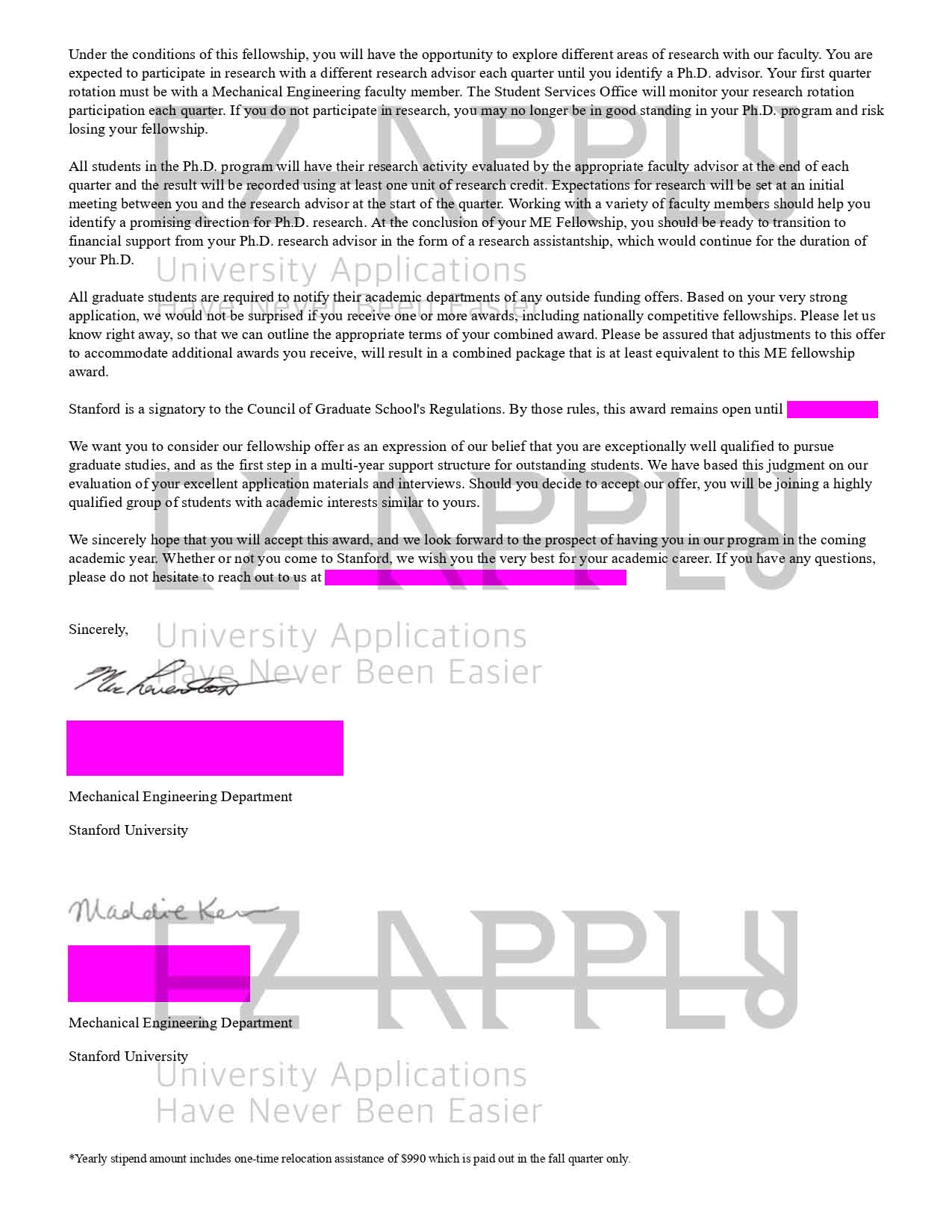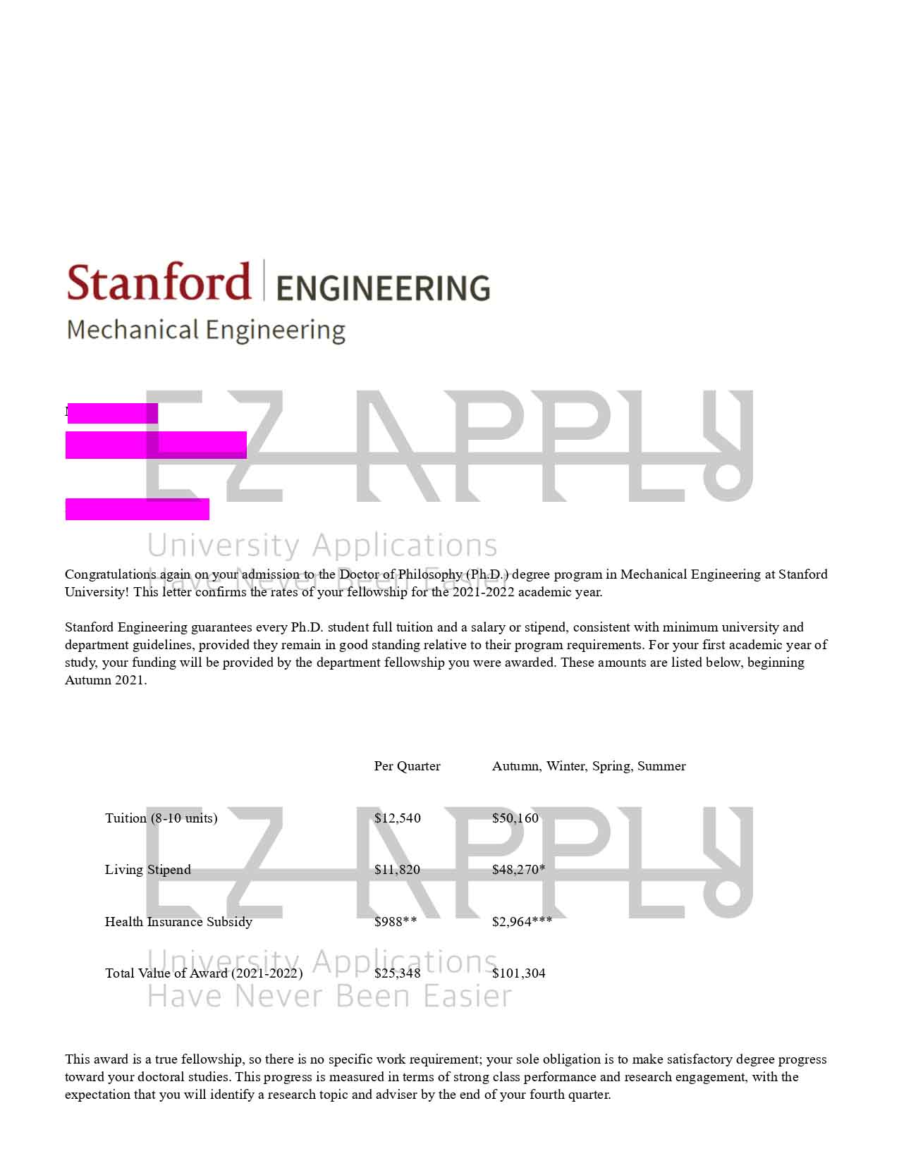 - اخذ پذیرش فول فاند توسط تیم «ایزی اپلای» در مقطع دکتری در رشته «مهندسی مکانیک» از «Stanford» در آمریکا برای ترم پاییز 2021