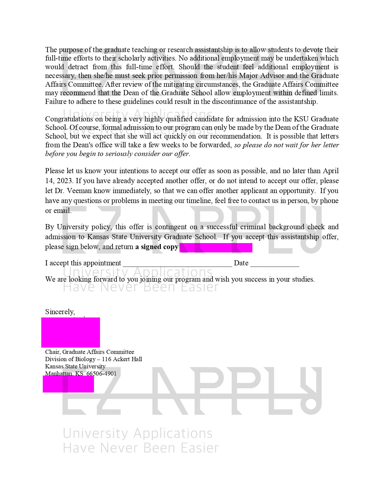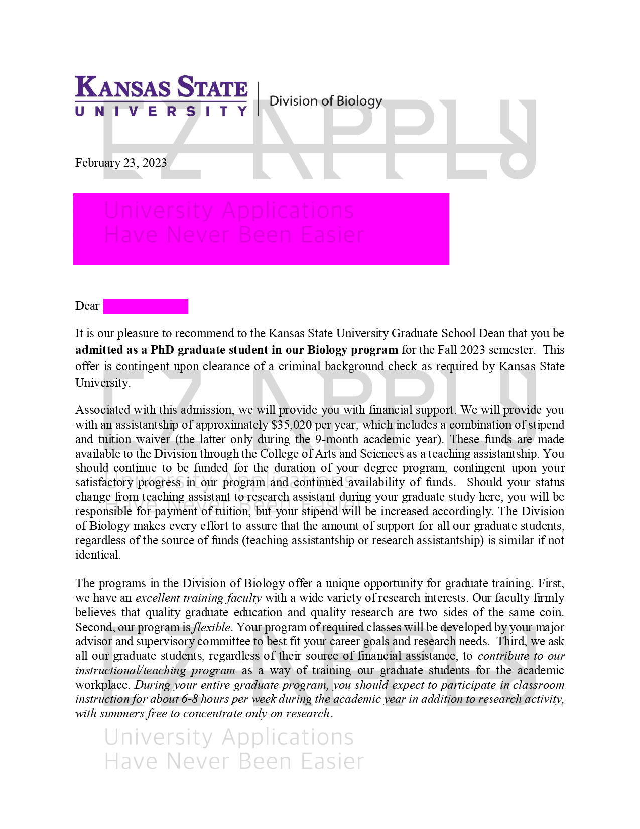 اخذ پذیرش فول فاند توسط تیم «ایزی اپلای» در مقطع «دکتری» در رشته ی «بایولوژی» از دانشگاه «Kansas State University» در آمریکا برای ترم پاییز 2023