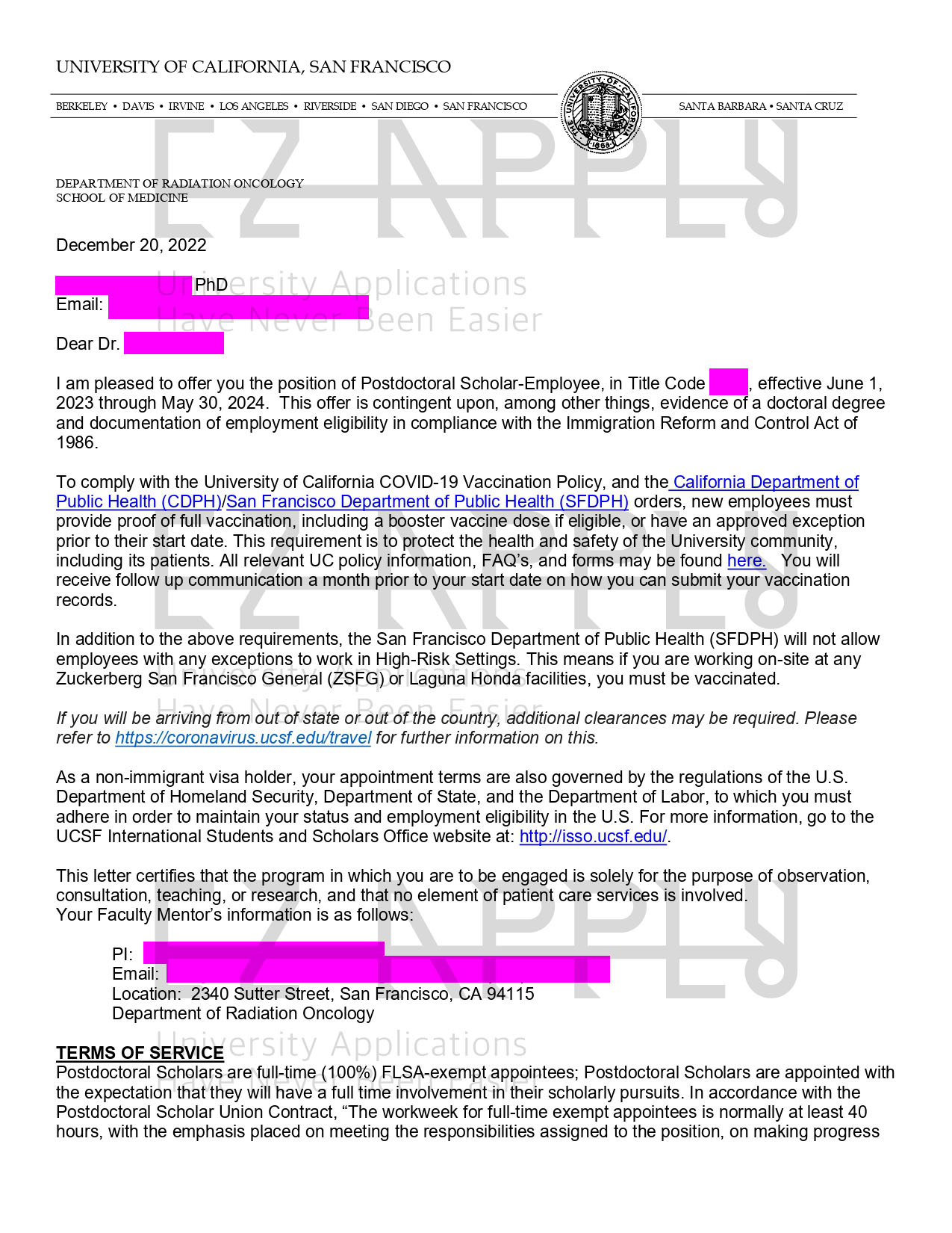 اخذ پذیرش فول فاند توسط تیم «ایزی اپلای» در مقطع «پست داک» در رشته ی «داروسازی حرفه ایی» از دانشگاه «University of California San Francisco» در آمریکا برای ترم پاییز 2023