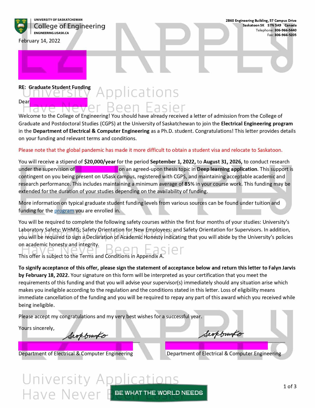 اخذ پذیرش فول فاند توسط تیم «ایزی اپلای» در مقطع دکتری در رشته «مهندسی برق» از «University of Saskatchewan» از کانادا برای پاییز 2022