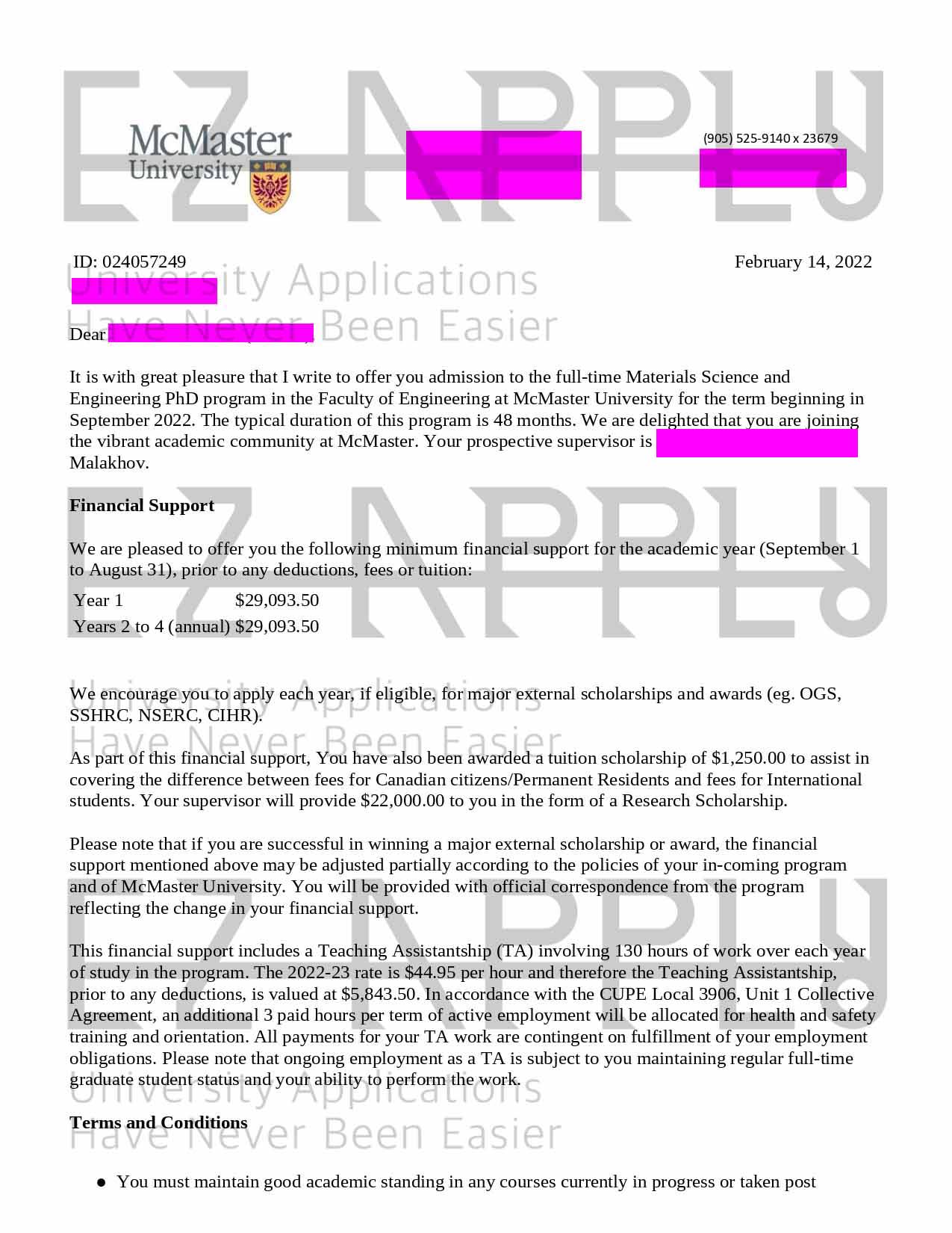 اخذ پذیرش فول فاند توسط تیم «ایزی اپلای» در مقطع دکتری در رشته «مهندسی و علم مواد» از «McMaster University» در کانادا برای پاییز 2022