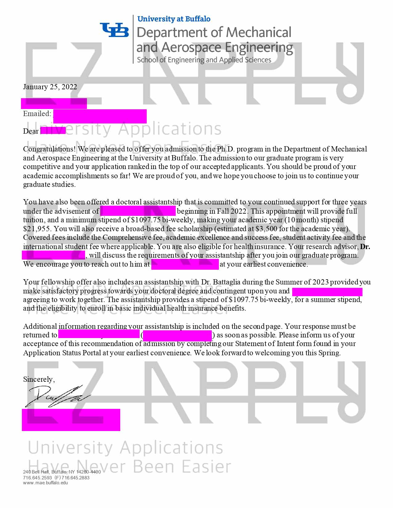 اخذ پذیرش فول فاند توسط تیم «ایزی اپلای» در مقطع دکتری در رشته «مهندسی مکانیک» از «Buffalo at University» در امریکا برای پاییز 2022
