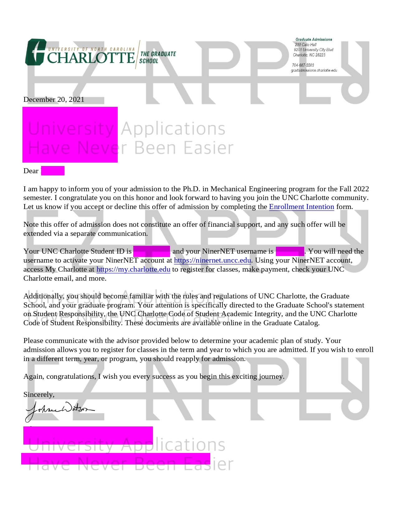 اخذ پذیرش فول فاند توسط تیم «ایزی اپلای» در مقطع دکتری در رشته «مهندسی مکانیک» از «University of North Carolina Charlotte» در آمریکا برای ترم پاییز ۲۰۲۲