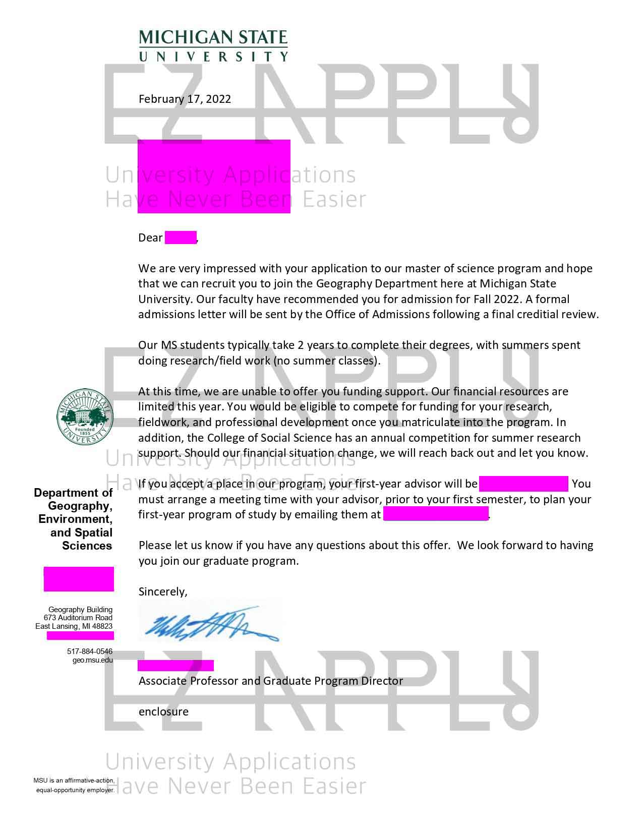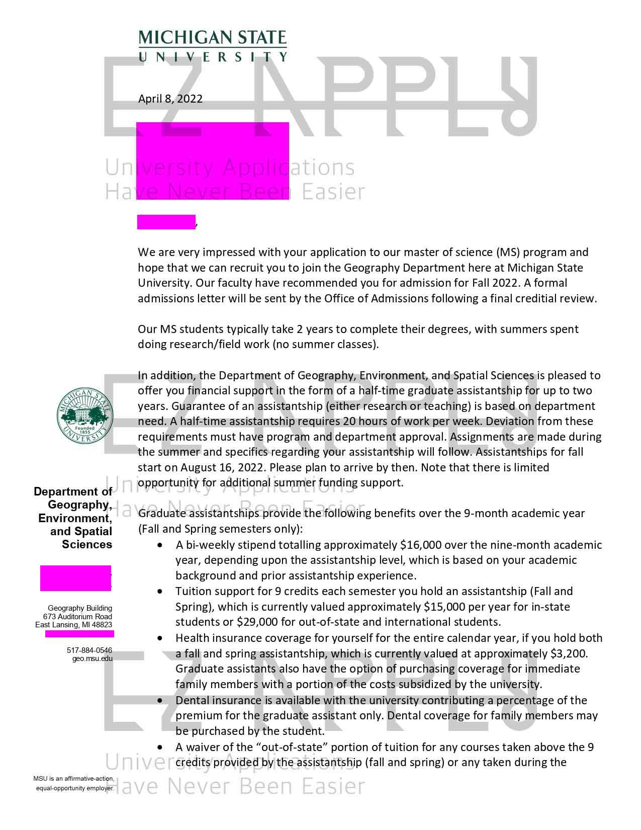 - اخذ پذیرش فول فاند توسط تیم «ایزی اپلای» در مقطع کارشناسی ارشد در رشته «جغرافیا» از «Michigan State University» در آمریکا برای ترم پاییز 2022