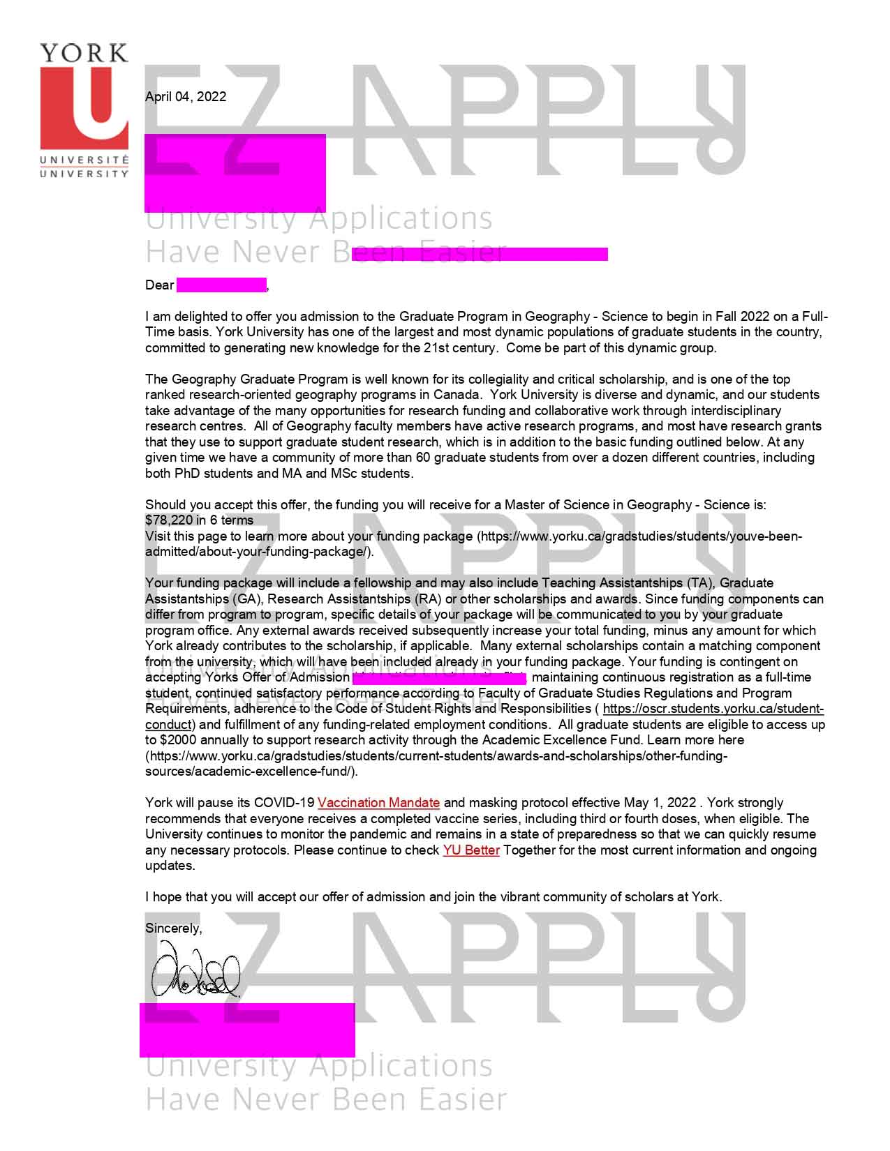 - اخذ پذیرش فول فاند توسط تیم «ایزی اپلای» در مقطع کارشناسی ارشد در رشته «جغرافیا» از «York University» در کانادا برای ترم پاییز 2022