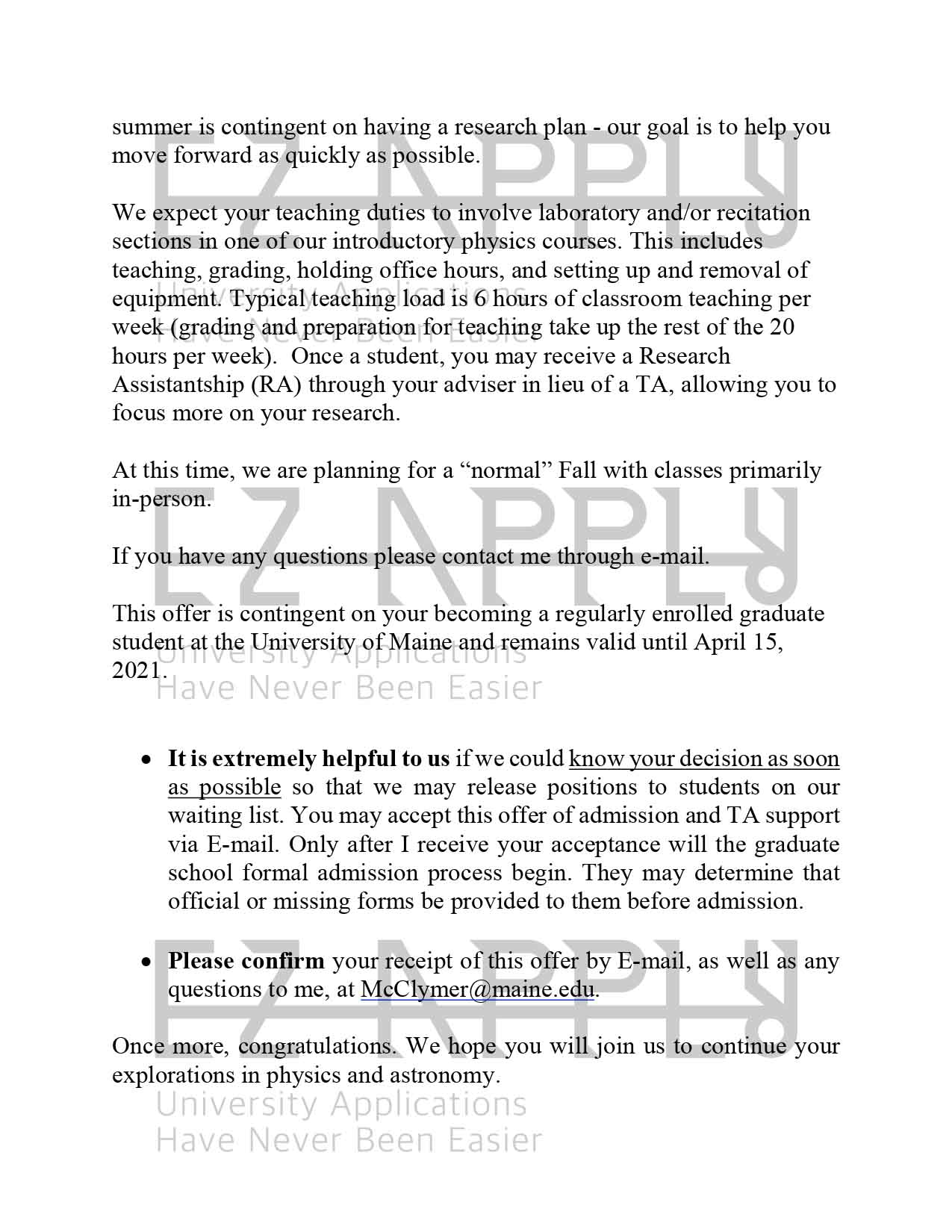 • اخذ پذیرش فول فاند توسط تیم «ایزی اپلای» در مقطع دکتری در رشته «فیزیک» از دانشگاه «Maine» در آمریکا برای ترم پاییز 2021