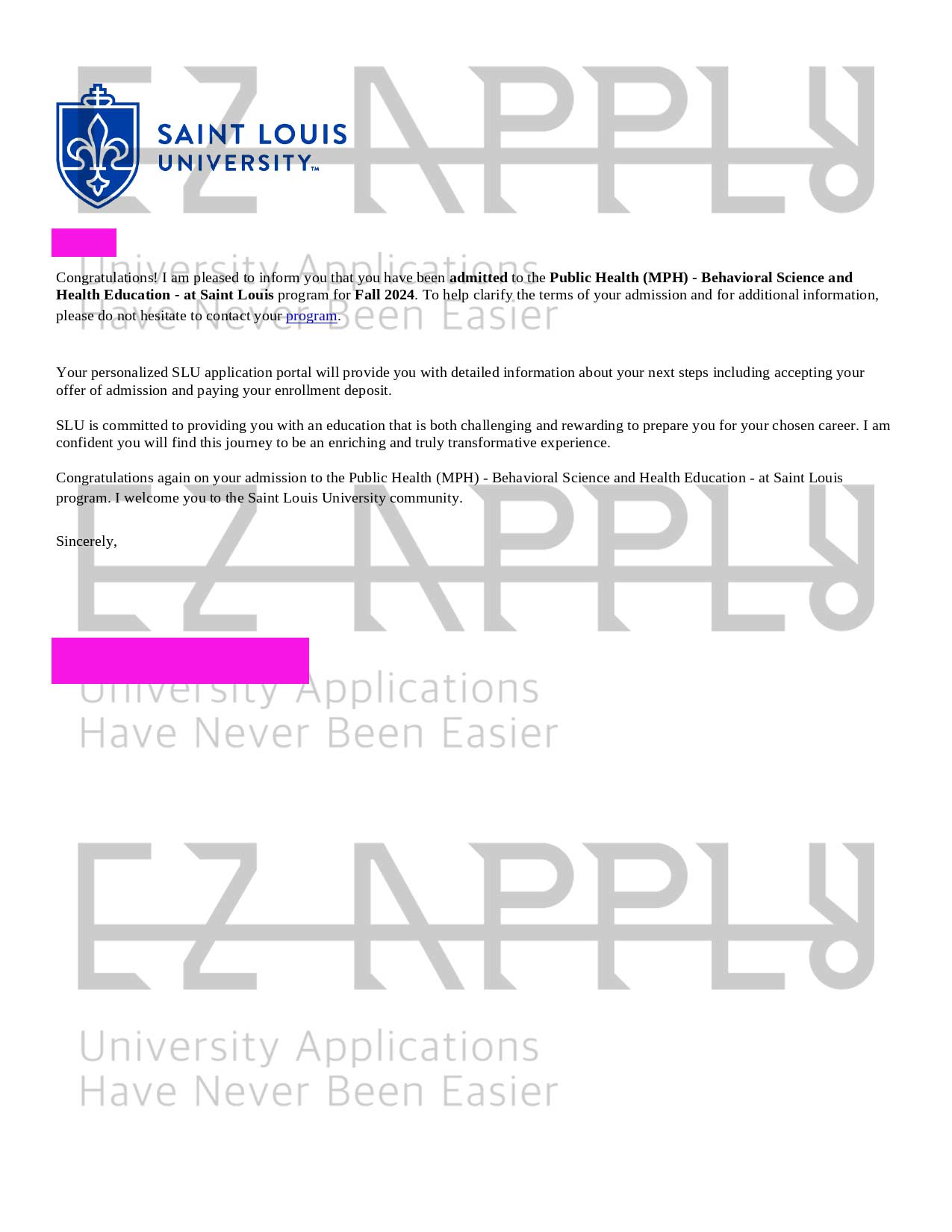 ادمیـشن اخذ شده توسط تیم ایزی اپلای در مقطع «کارشناسی ارشد» در رشته « Public Health» از Saint Louis University از آمریکا برای پاییز 2024