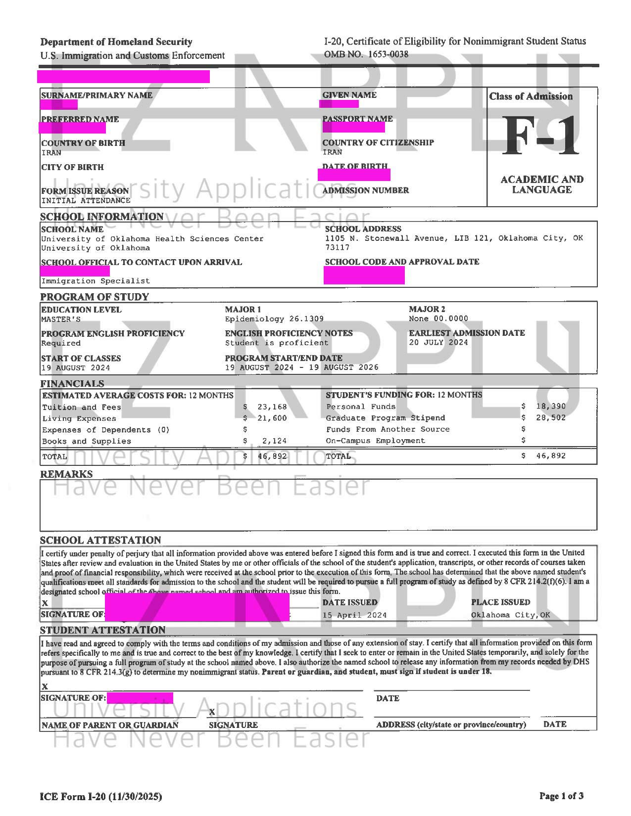 ادمیـشن فول فاند اخذ شده توسط تیم ایزی اپلای در مقطع «کارشناسی ارشد» در رشته «Epidemiology» از University of Oklahoma از آمریکا برای پاییز 2024