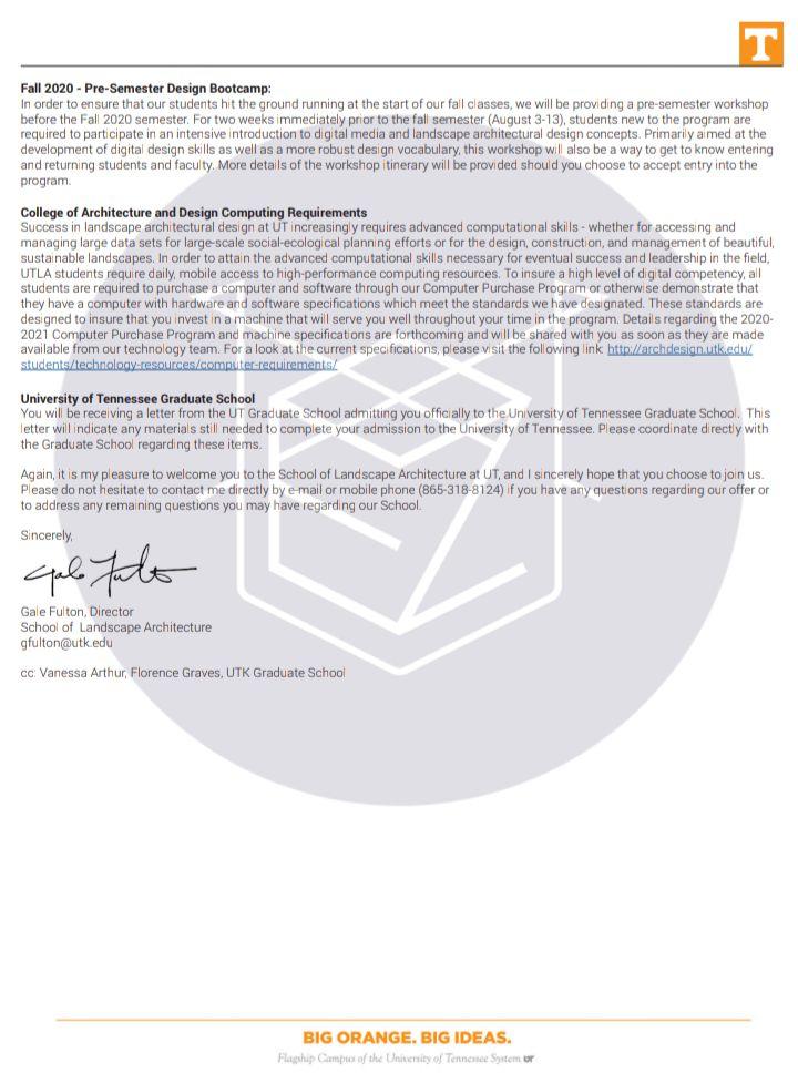 - اخذ پذیرش توسط تیم «ایزی اپلای» در مقطع کارشناسی ارشد رشته «معماری منظر» از دانشگاه «Tennessee Knoxville» آمریکا برای ترم پاییز 2020
