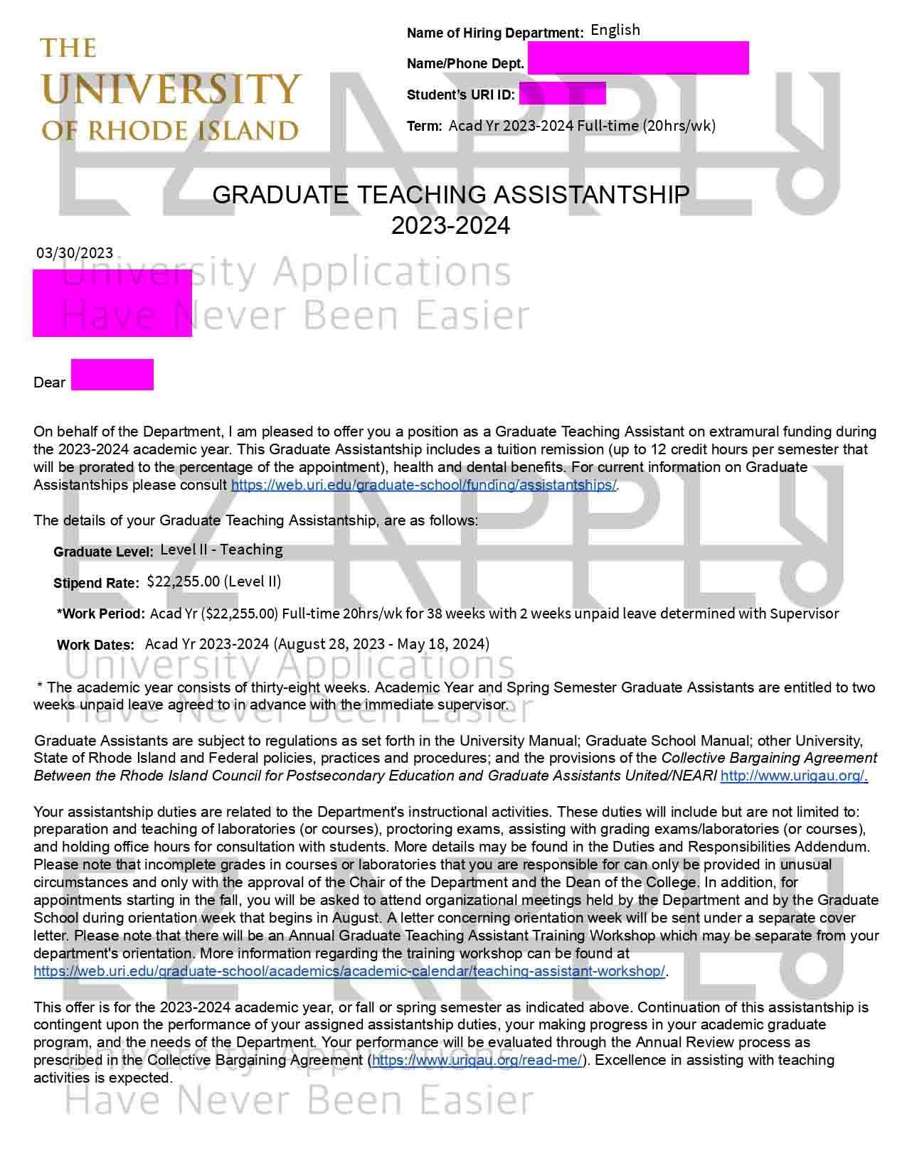پذیرش فول فاند اخذ شده توسط تیم ایزی اپلای در مقطع «دکتری» در رشته «زبان و ادبیات انگلیسی» از «University of Rhode Island» در آمریکا برای پاییز 2023