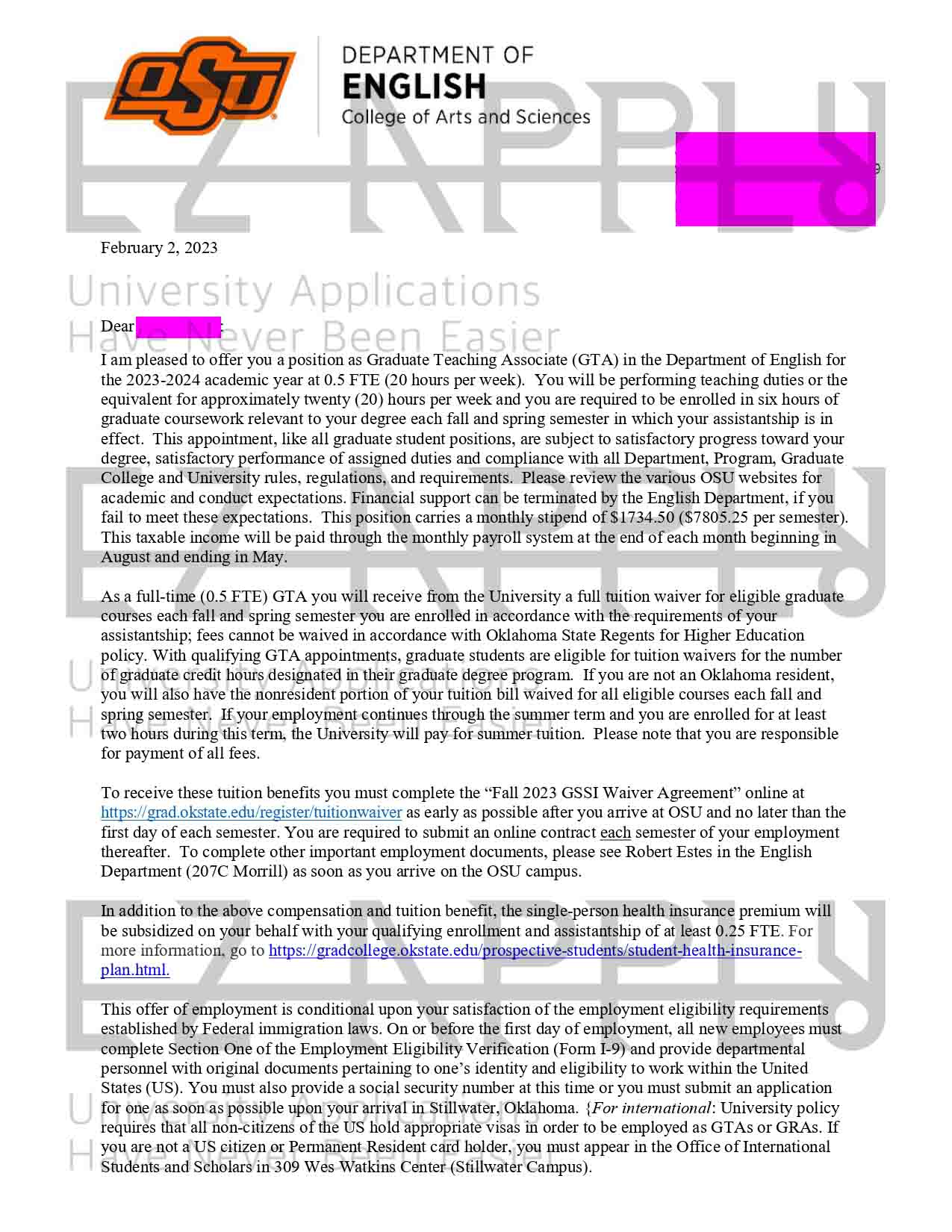 پذیرش فول فاند اخذ شده توسط تیم ایزی اپلای در مقطع «دکتری» در رشته «زبان و ادبیات انگلیسی» از «Oklahoma State University» در آمریکا برای پاییز 2023