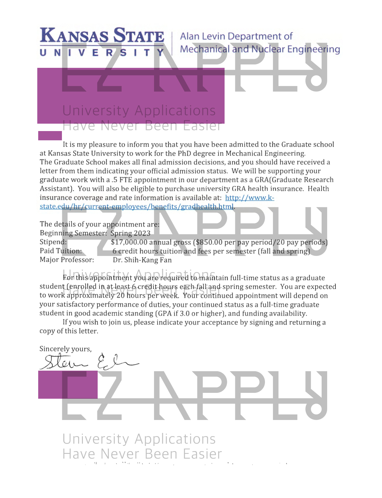 - پذیرش اخذ شده توسط تیم ایزی اپلای در مقطع «دکتری» در رشته «مهندسی مکانیک» از «Kansas State University» از آمریکا برای بهار 2024